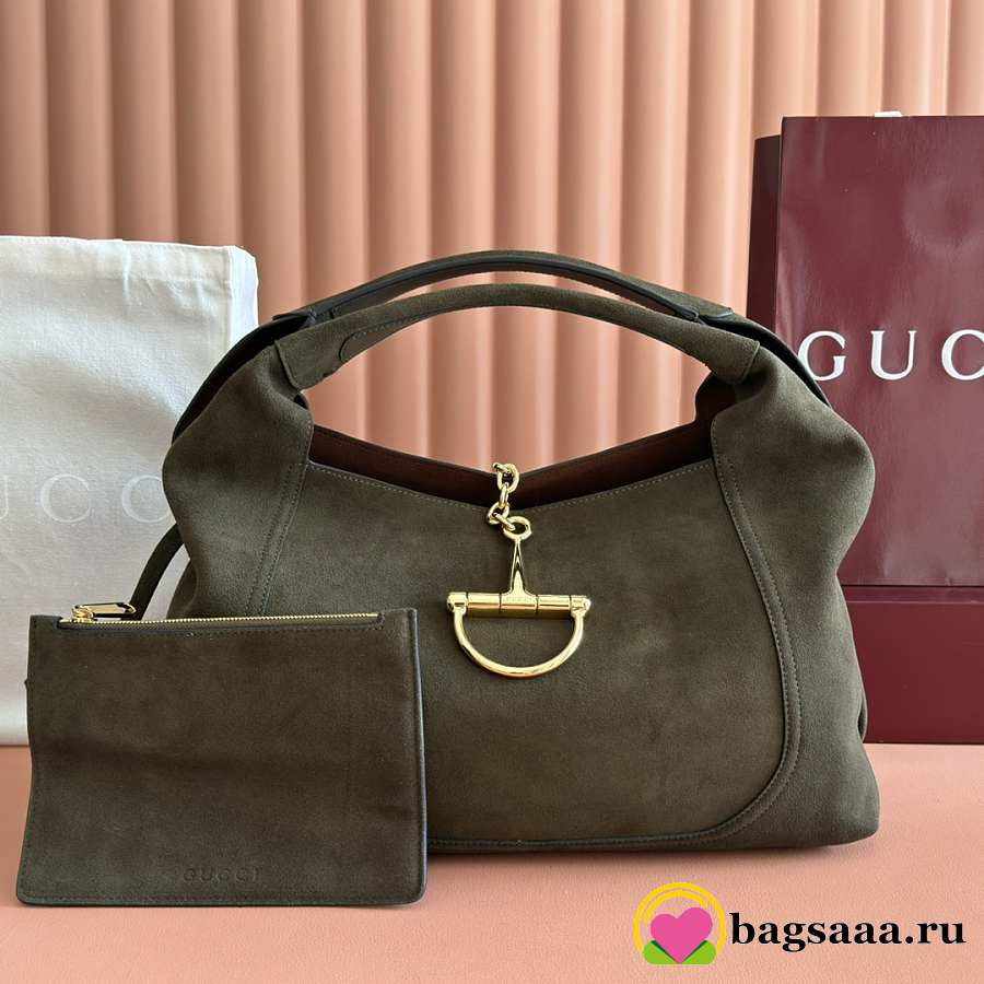 Bagsaaa Gucci Softbit maxi shoulder bag 837466 green suede - 46cm