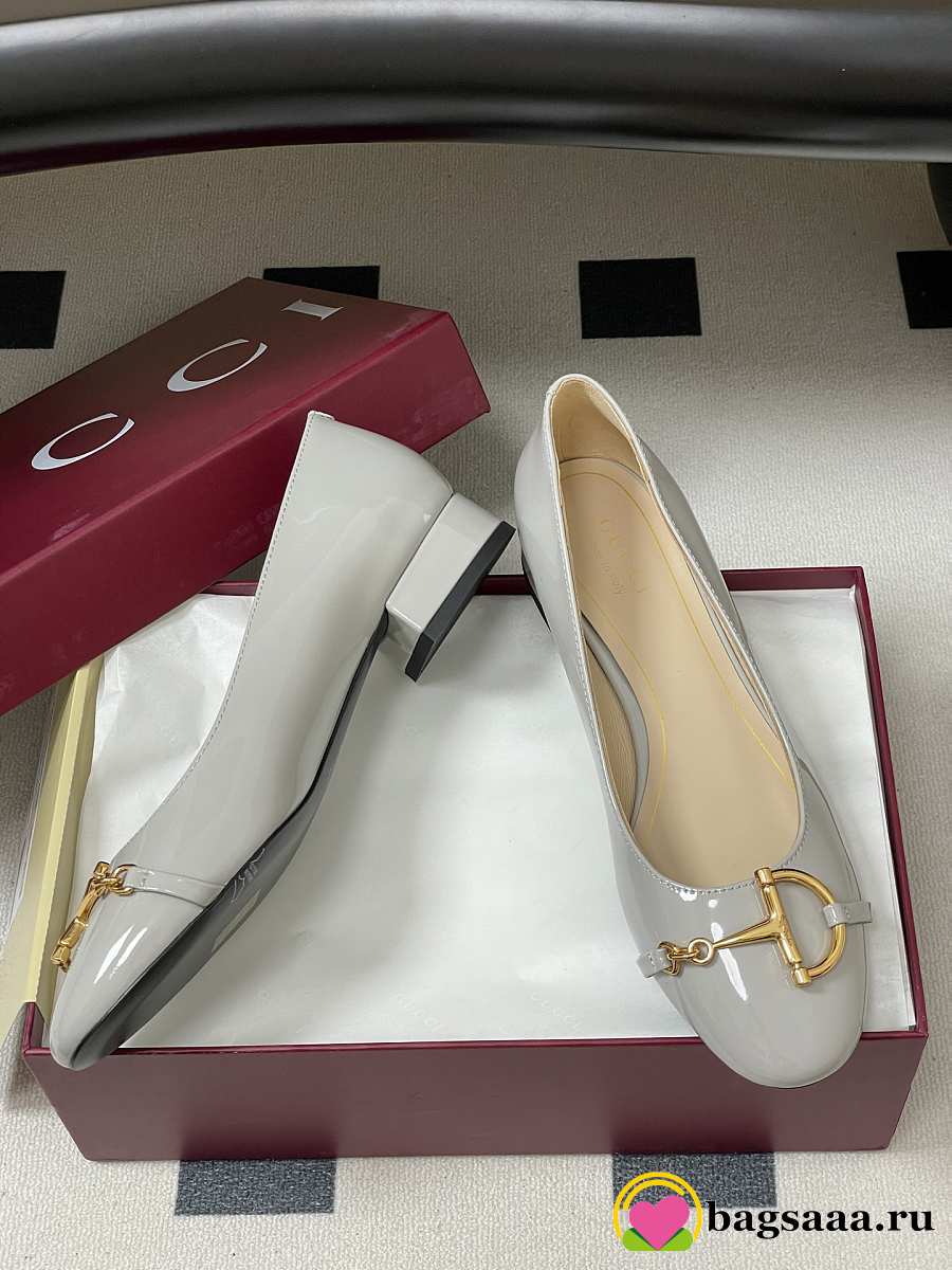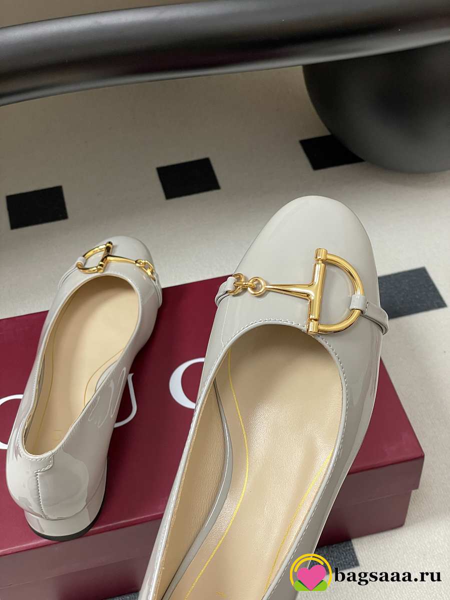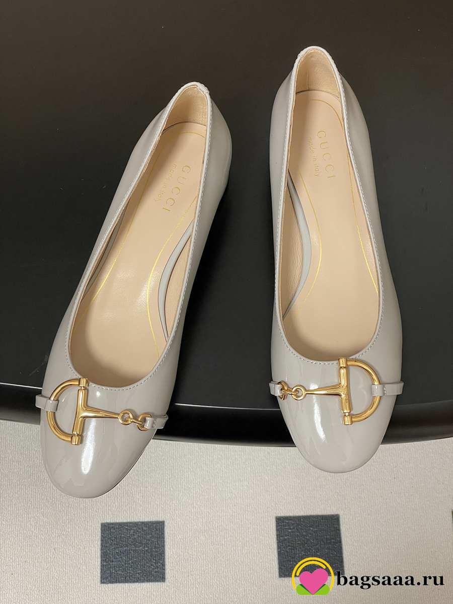 Bagsaaa Gucci Women's ballet flat with half Horsebit 849652 gray patent - 2.5cm