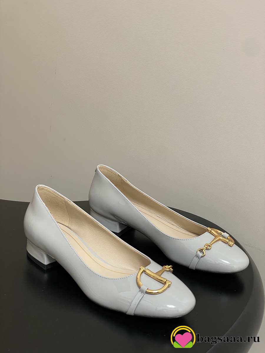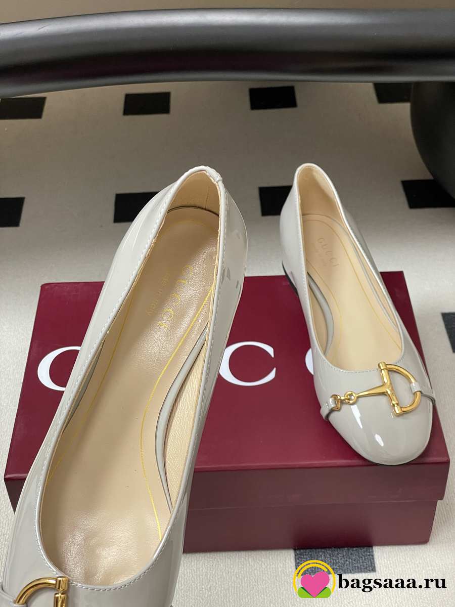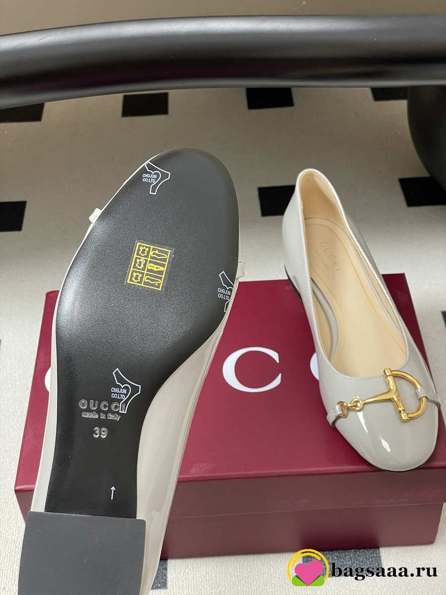 Bagsaaa Gucci Women's ballet flat with half Horsebit 849652 gray patent - 2.5cm
