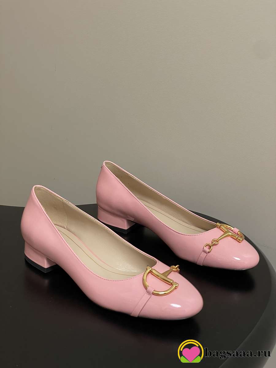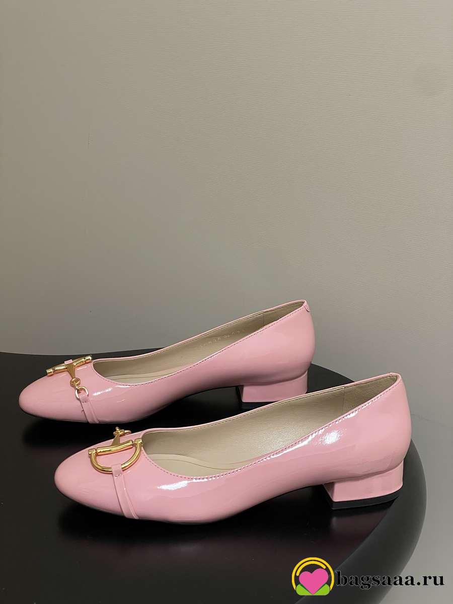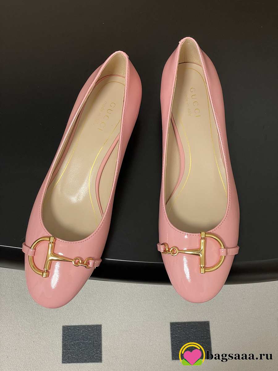 Bagsaaa Gucci Women's ballet flat with half Horsebit 849652 pink patent - 2.5cm