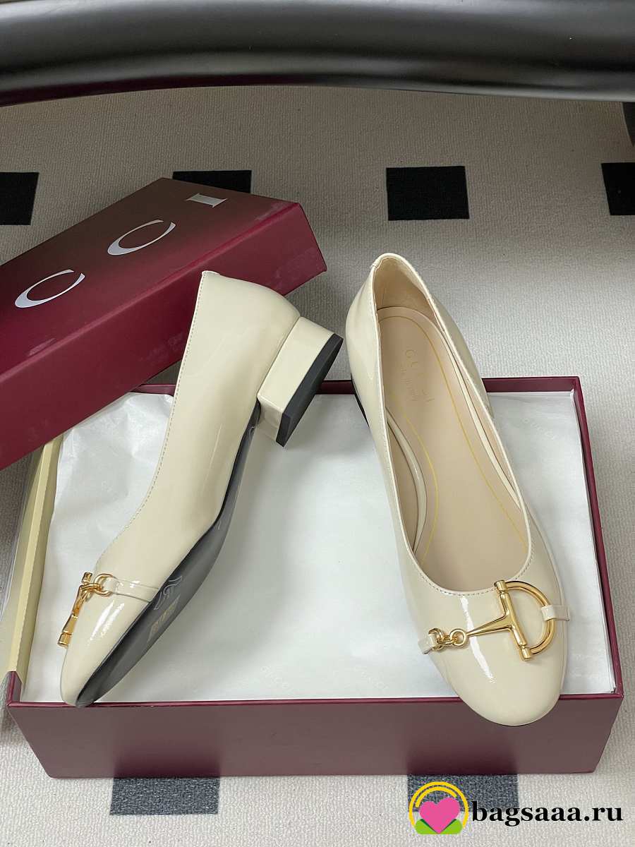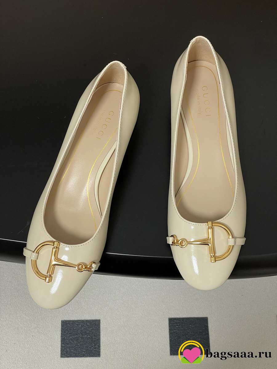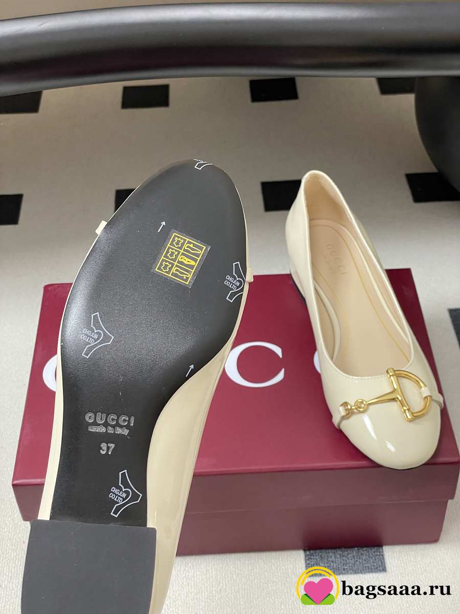 Bagsaaa Gucci Women's ballet flat with half Horsebit 849652 white patent - 2.5cm