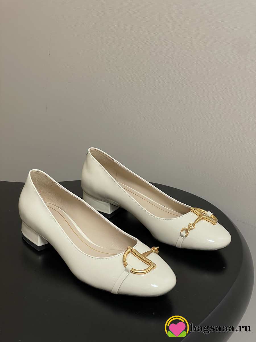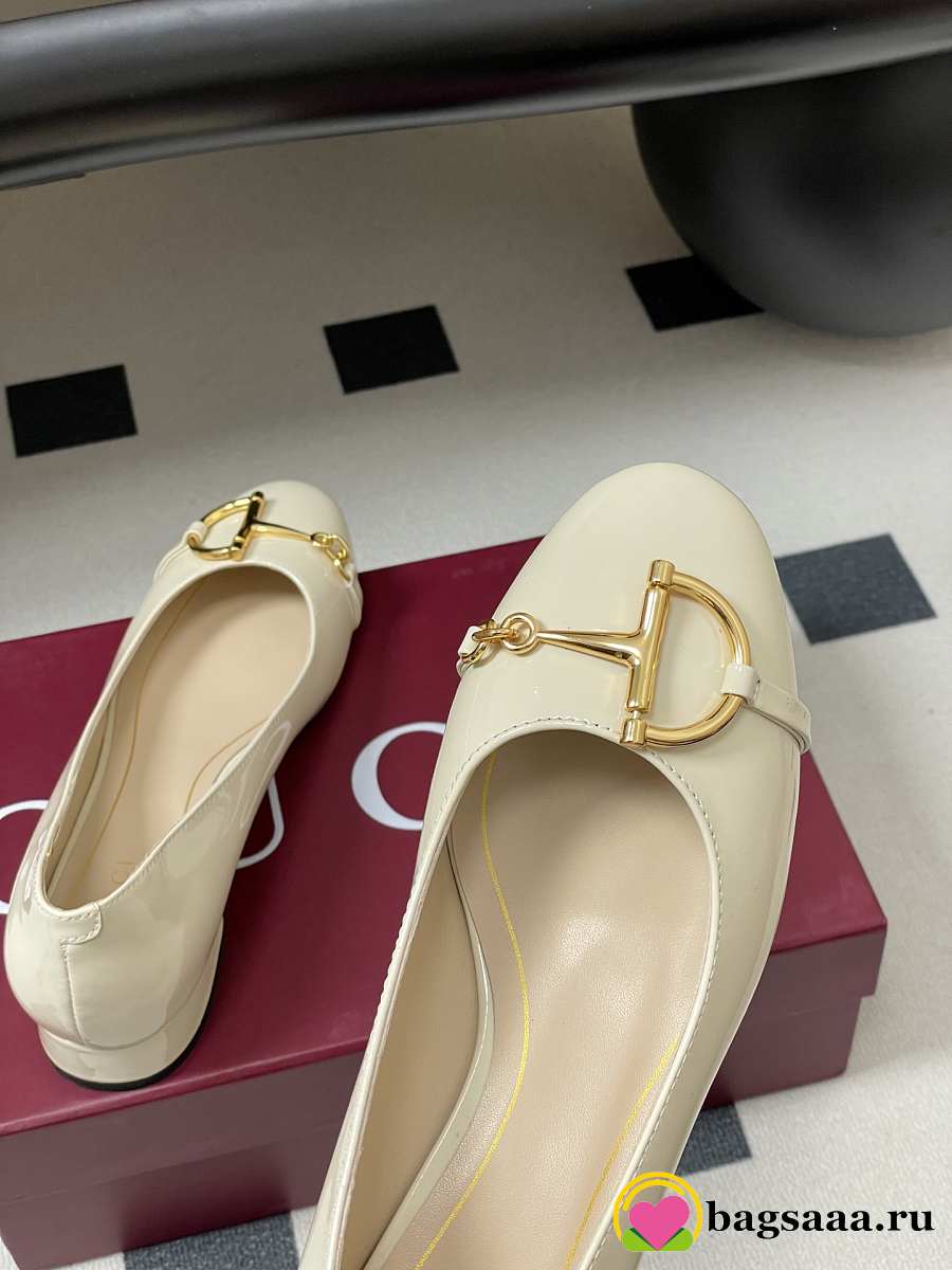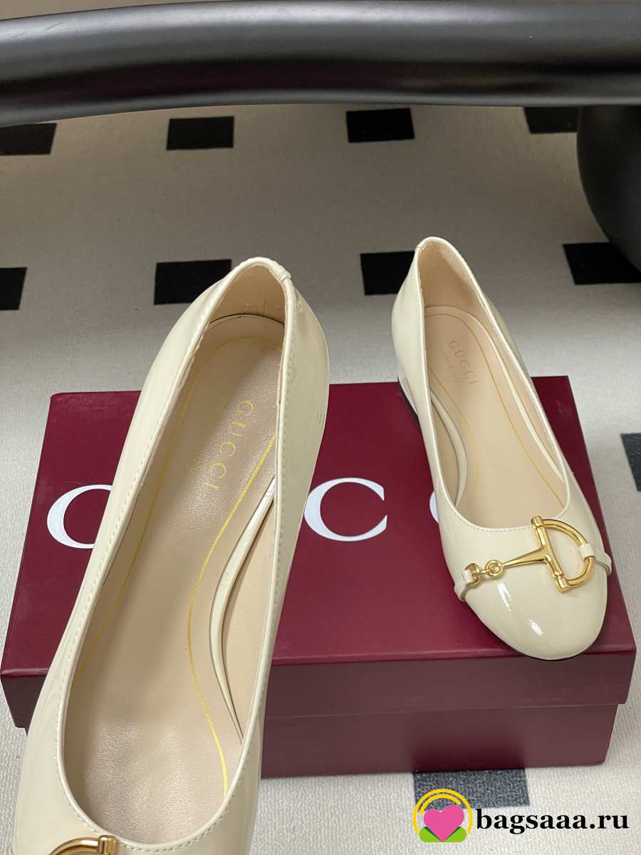 Bagsaaa Gucci Women's ballet flat with half Horsebit 849652 white patent - 2.5cm