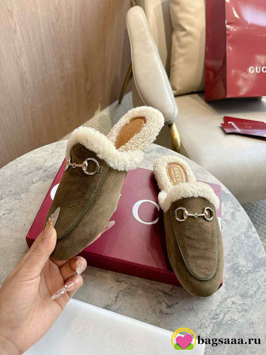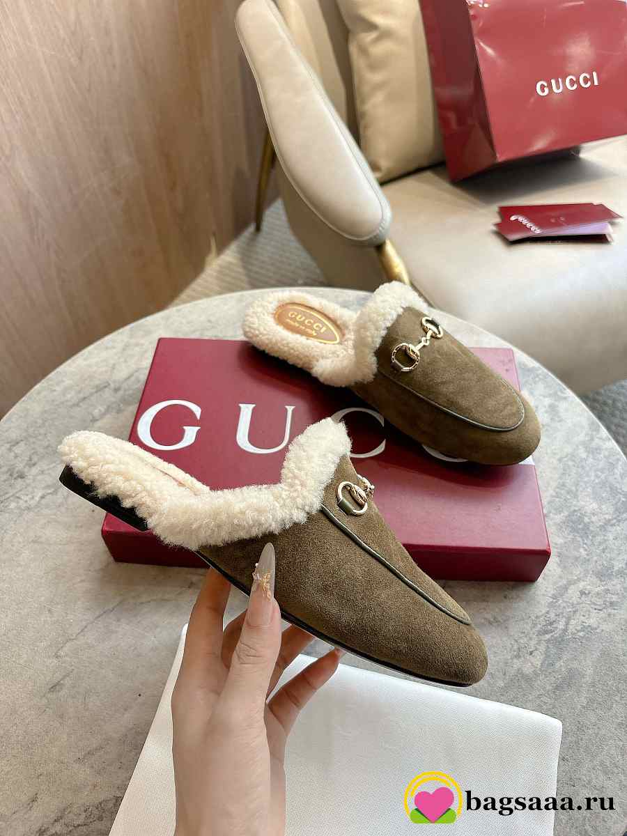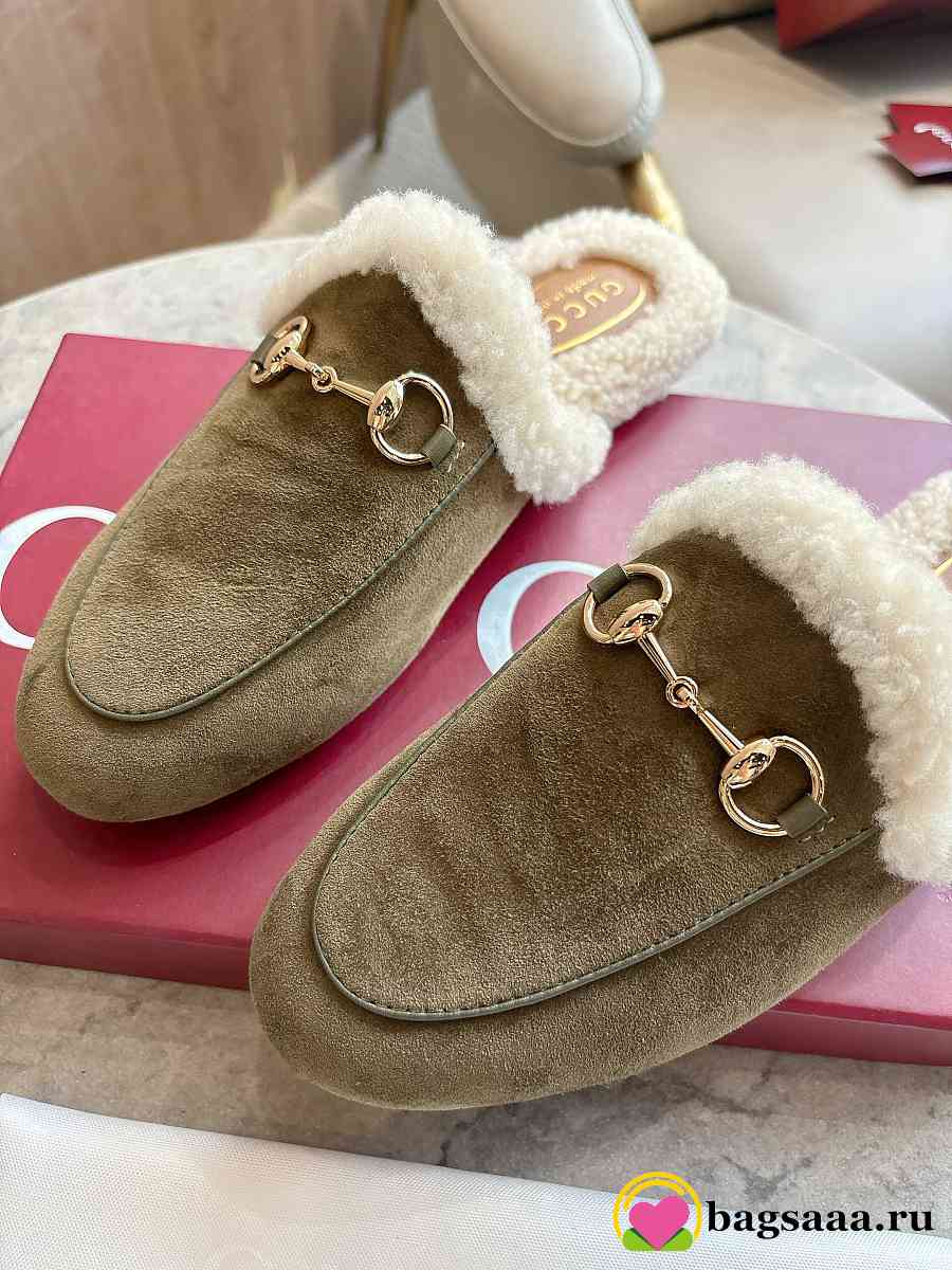 Bagsaaa Gucci Women's Princetown slipper olive green suede