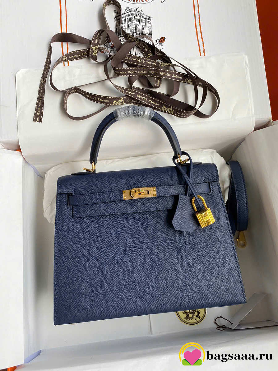 Bagsaaa Hermes Kelly Blue Epsom Leather - 25cm