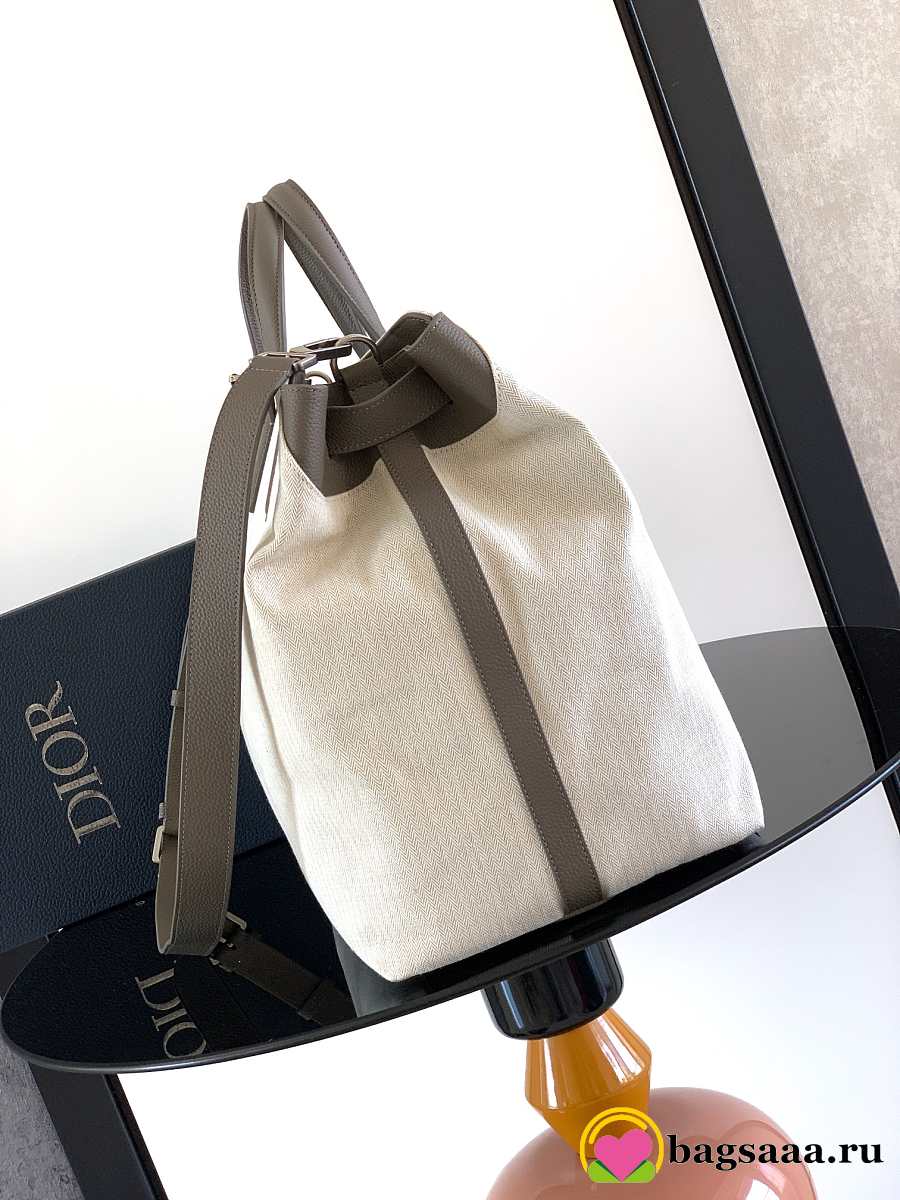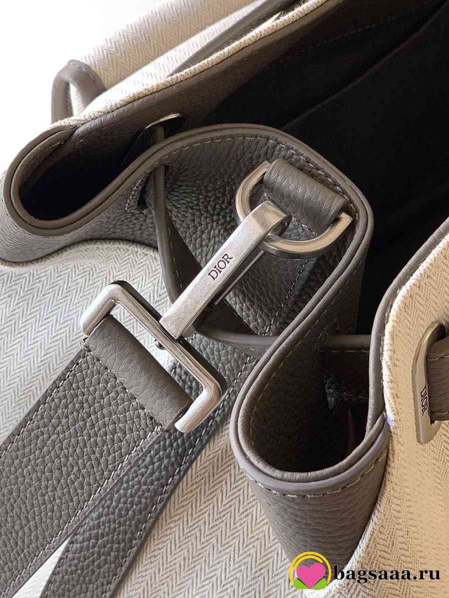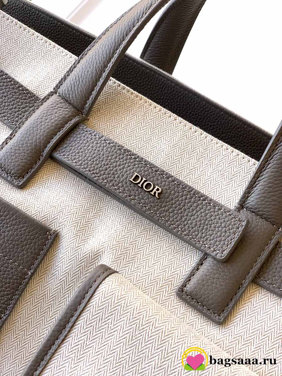 Bagsaaa Large Dior Normandie Tote Bag Beige Herringbone Cotton Canvas and Gray Dior Icons Calfskin - 49cm