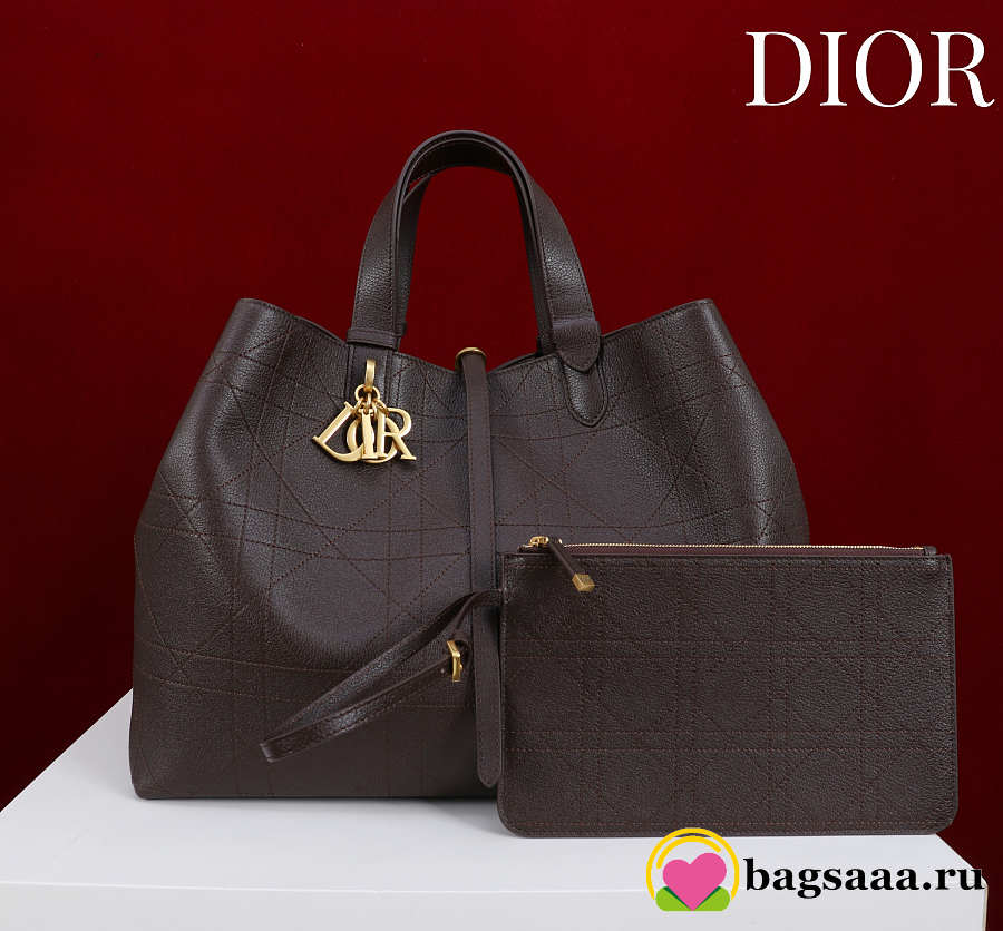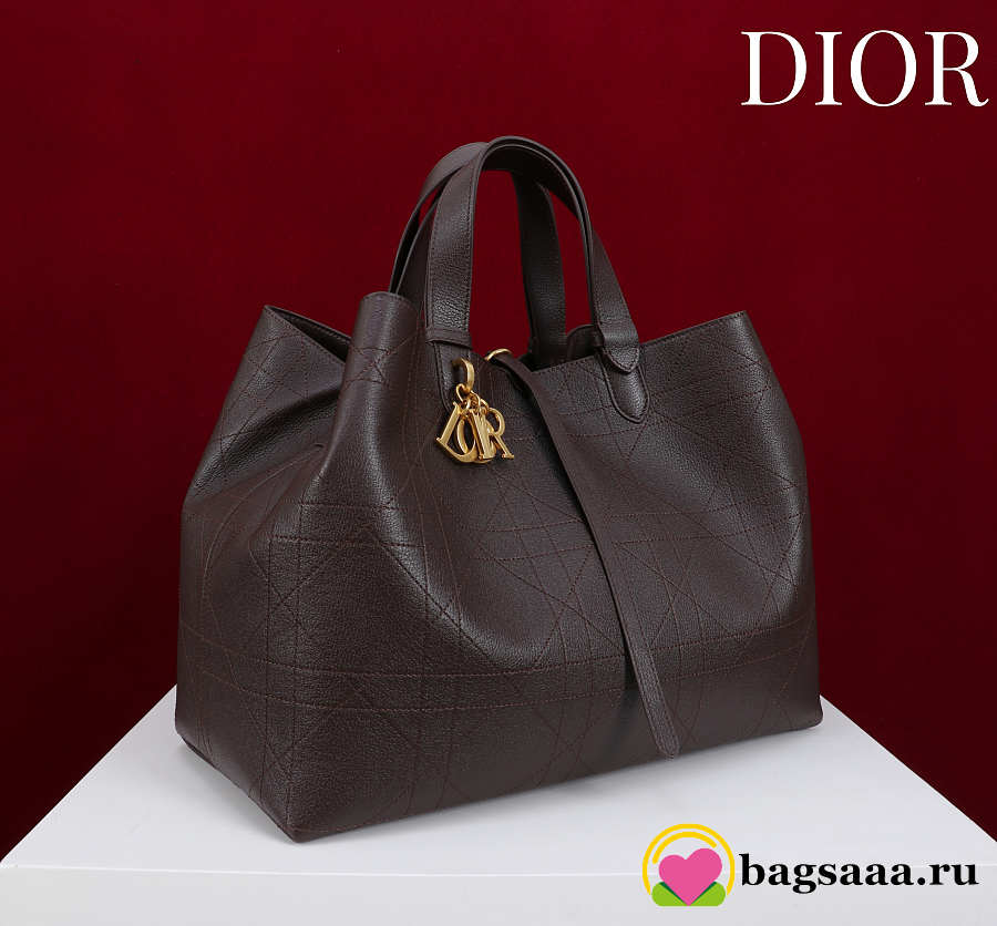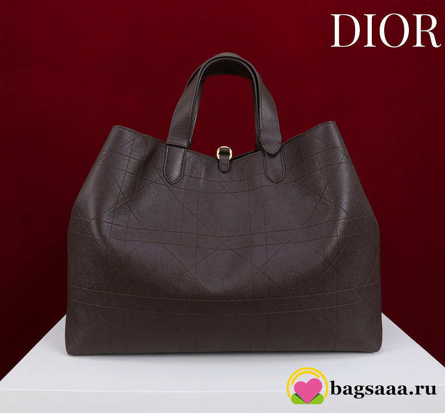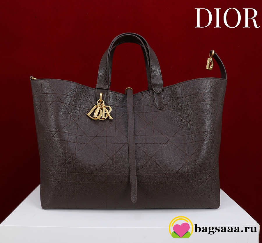 Bagsaaa Large Dior Toujours Bag Chocolate Brown Flat Macrocannage Shiny Grained Calfskin 37cm
