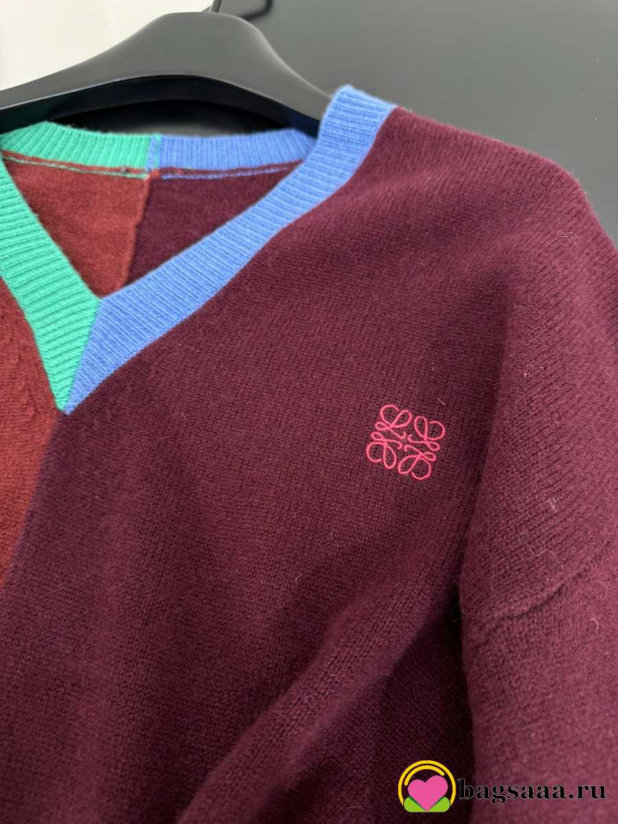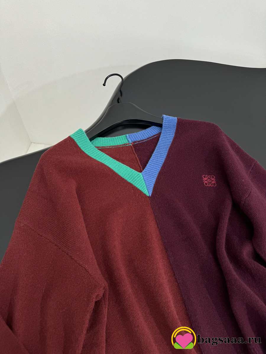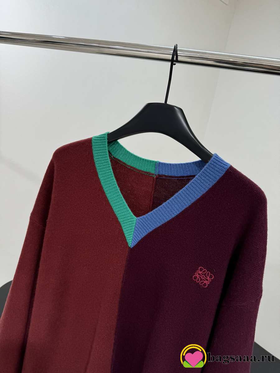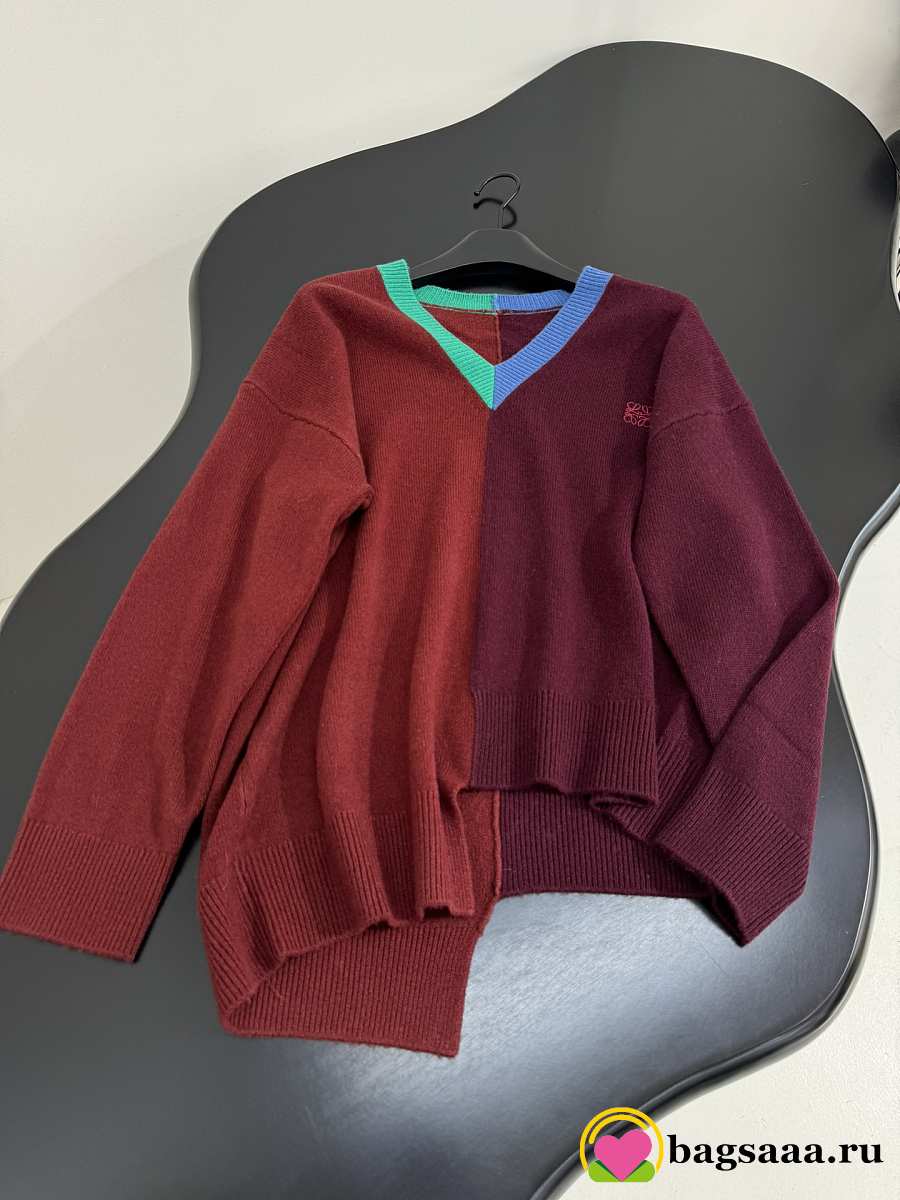 Bagsaaa Loewe Anagram Asymmetric Wool-Blend Sweater in burgundy