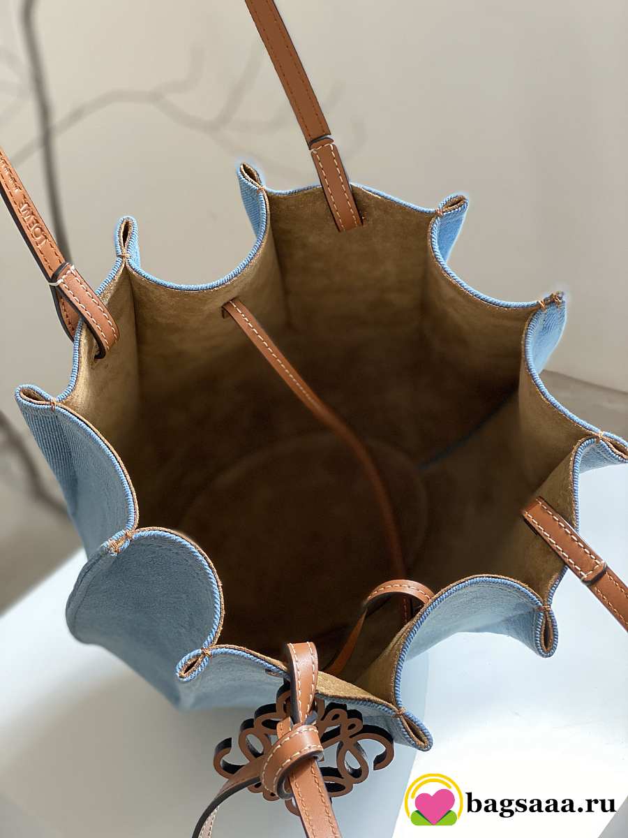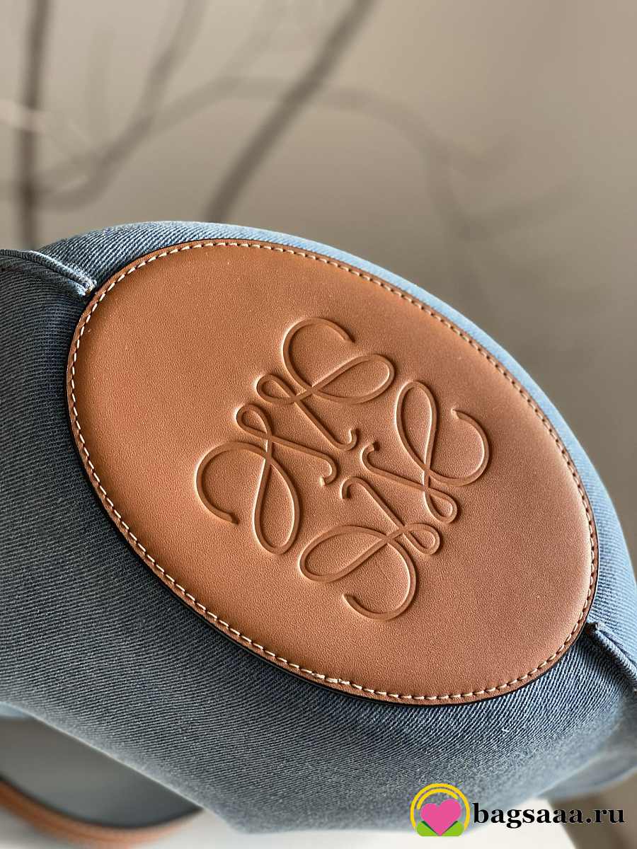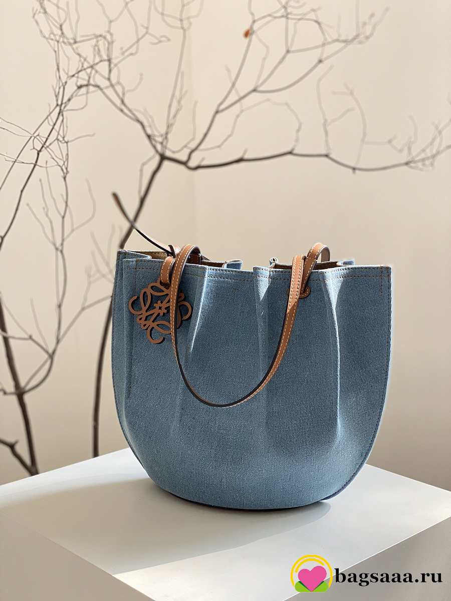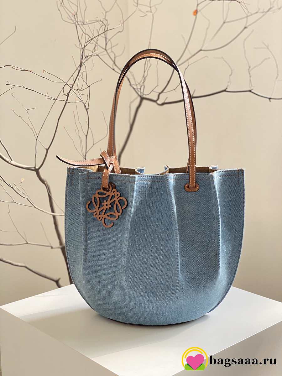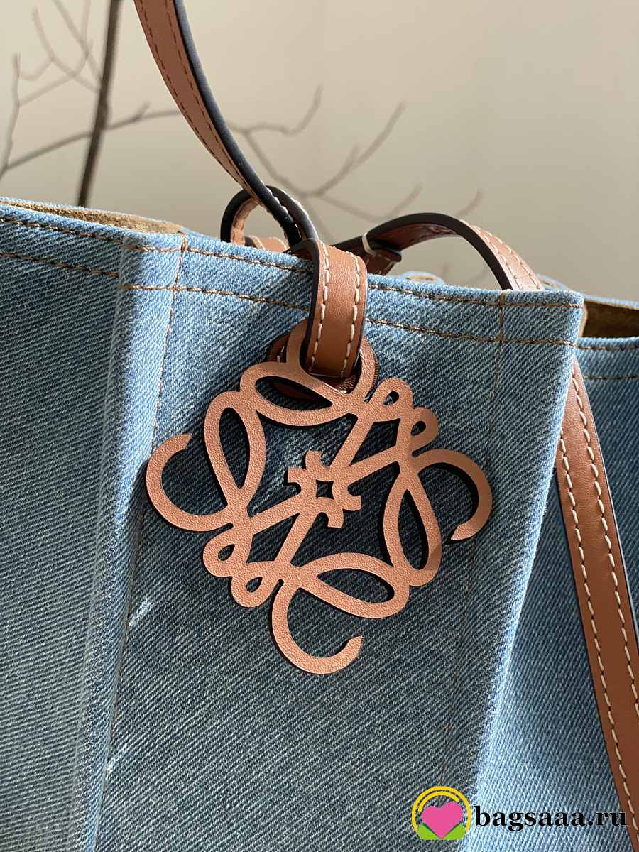 Bagsaaa Loewe Paula's Ibiza Denim Shell Tote bag in blue denim with tan - 28cm