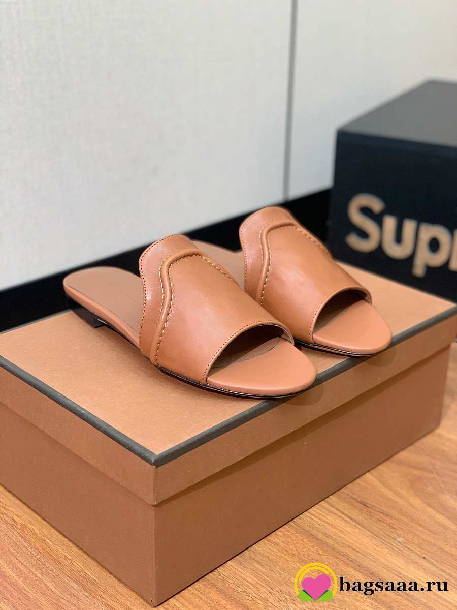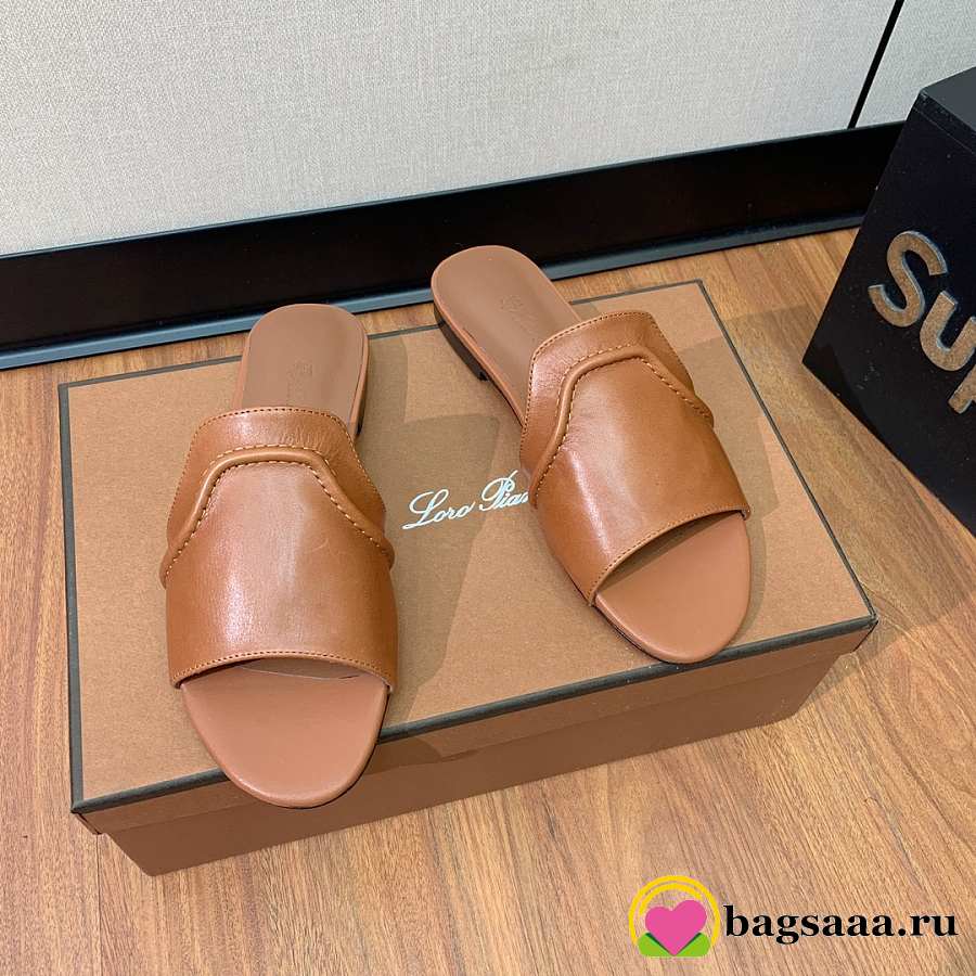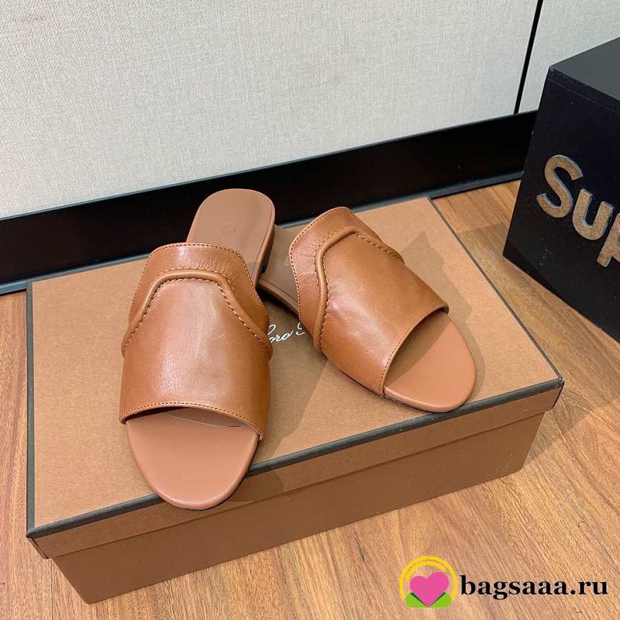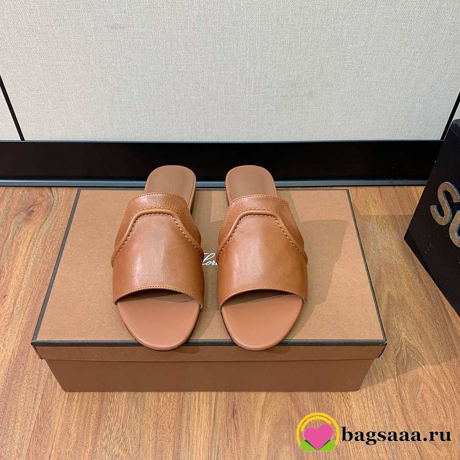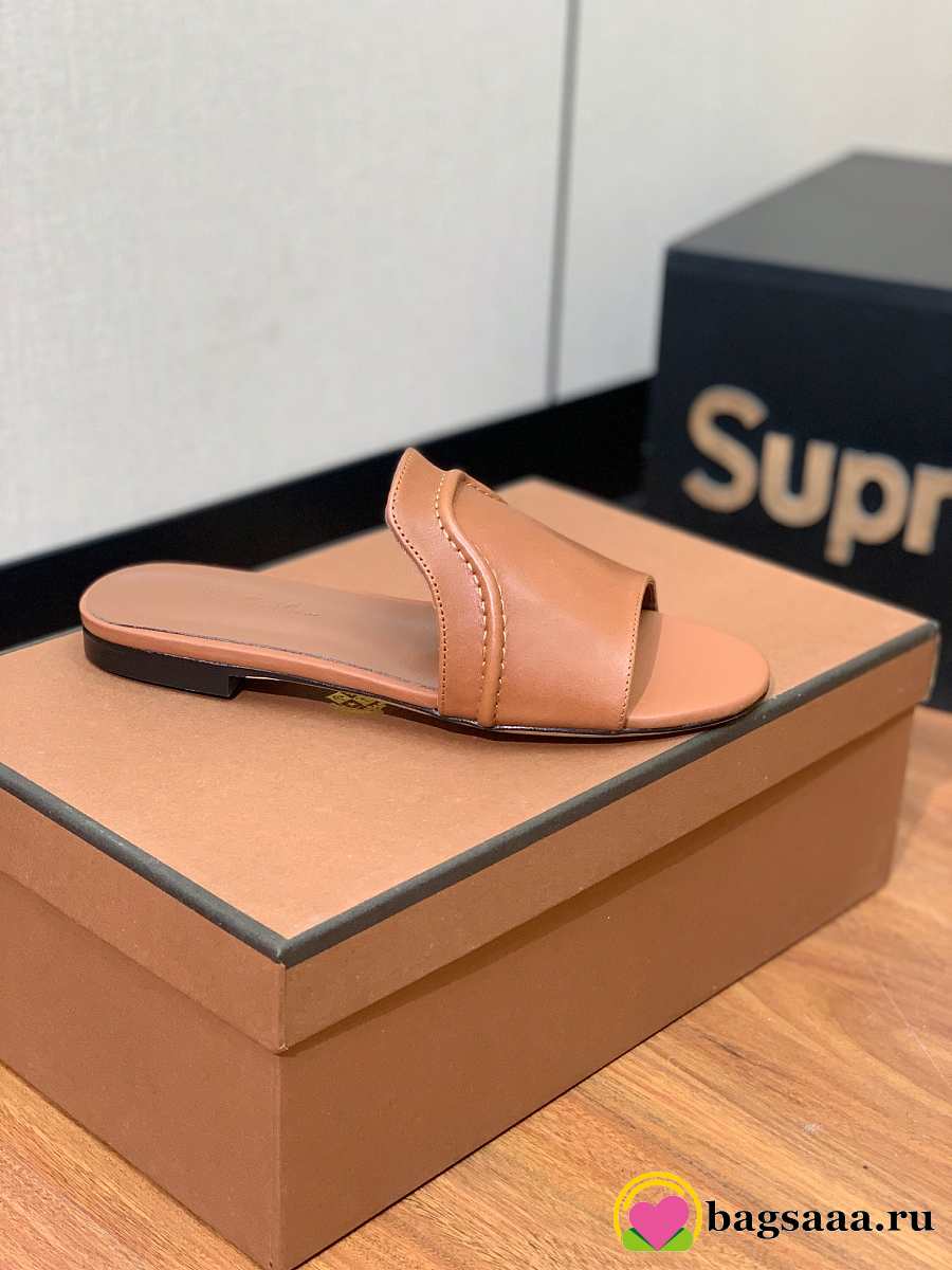 Bagsaaa Loro Piana Sesia leather slides in tan