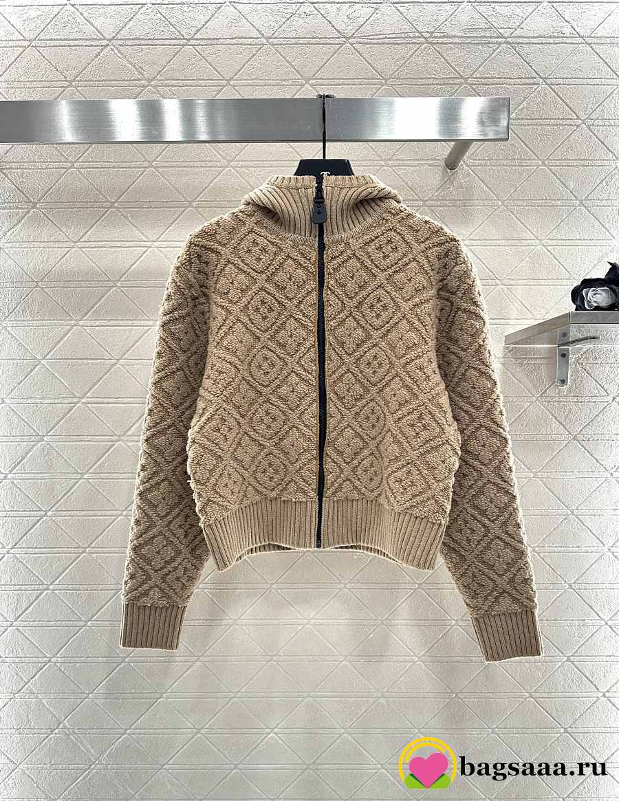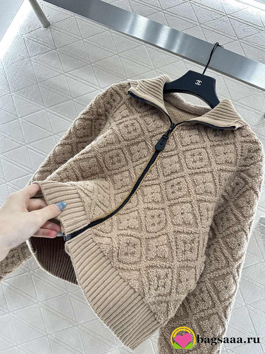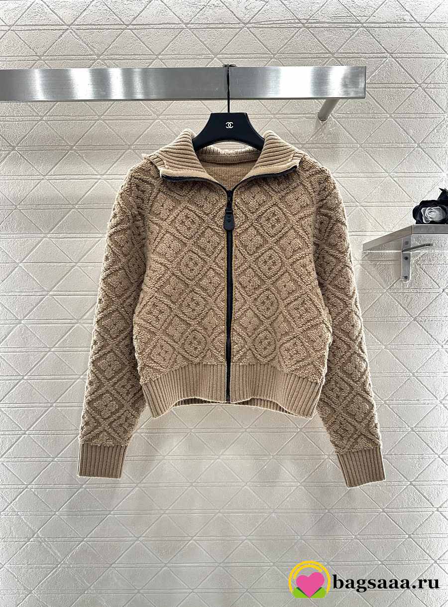 Bagsaaa Louis Vuitton Monogram Toweling Zip-Up Hoodie in camel