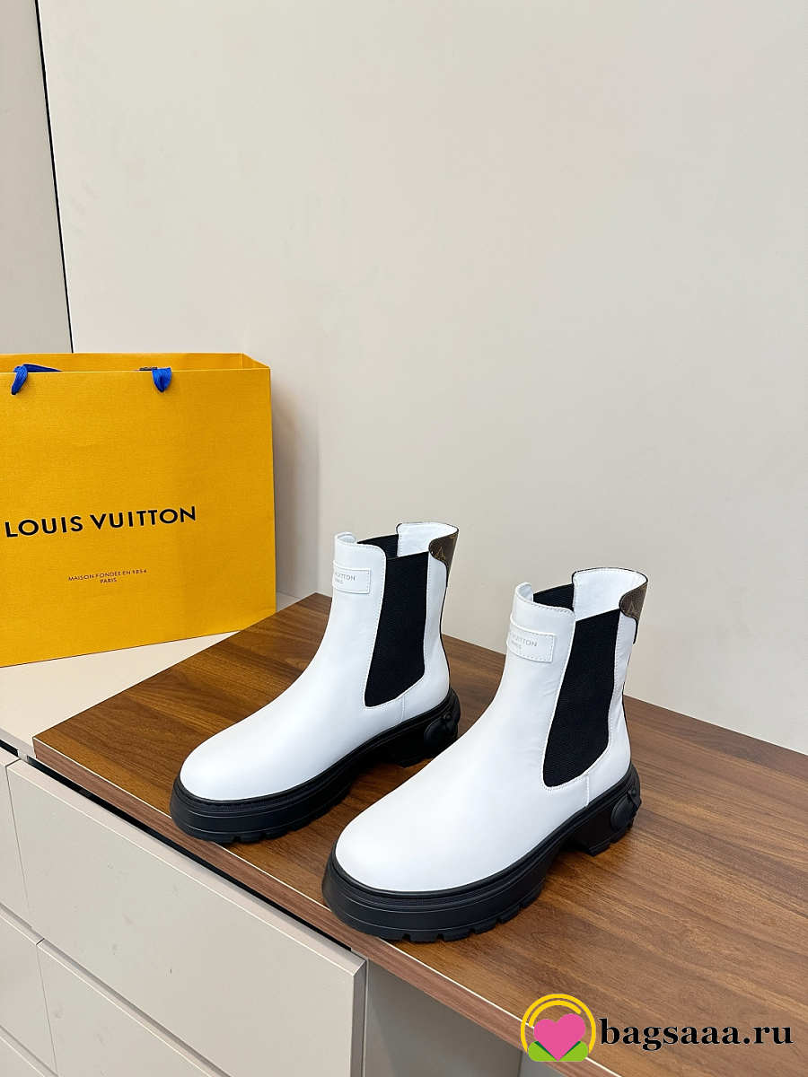 Bagsaaa Louis Vuitton Ruby Flat Ankle Boots in white