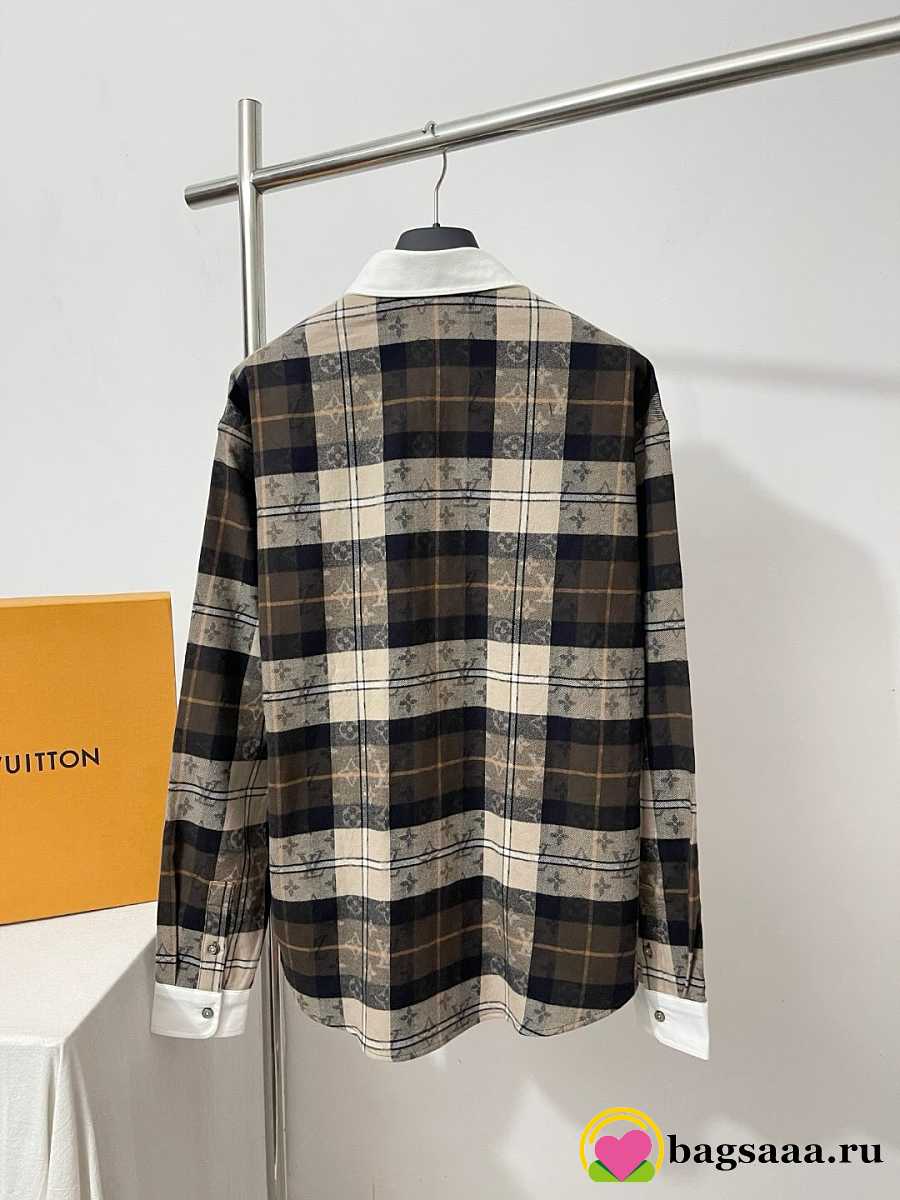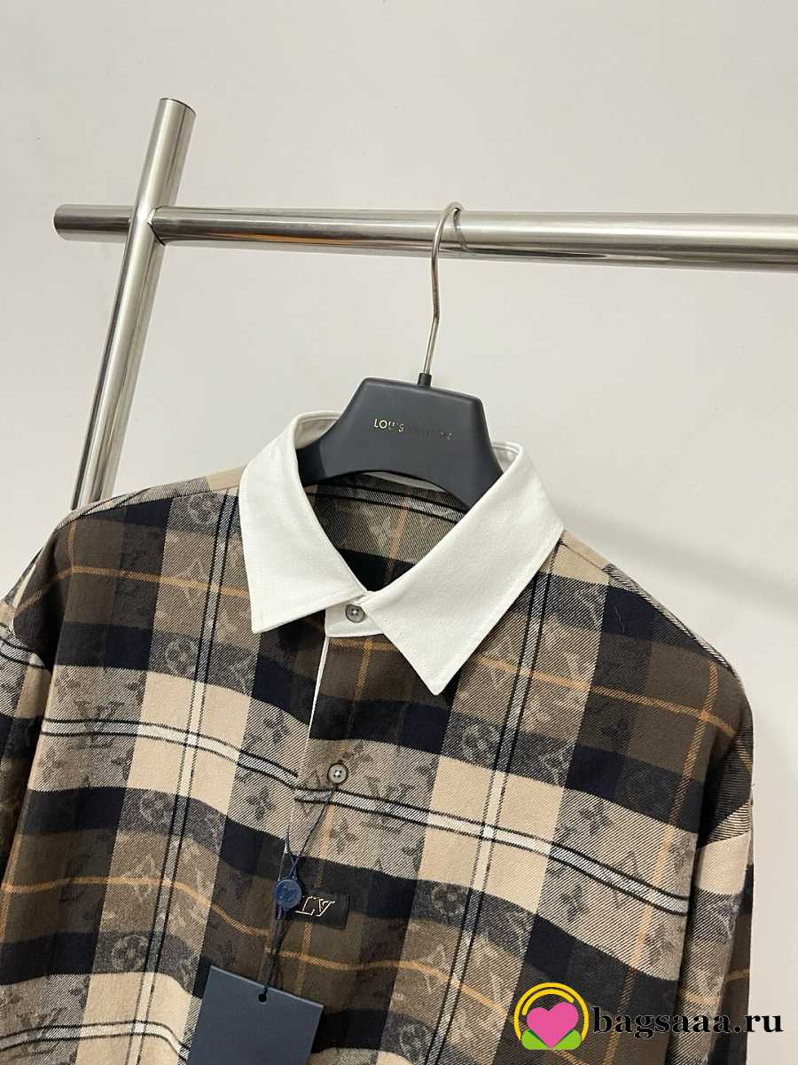 Bagsaaa LV Monogram Flannel Long-Sleeved Polo Shirt Caramel