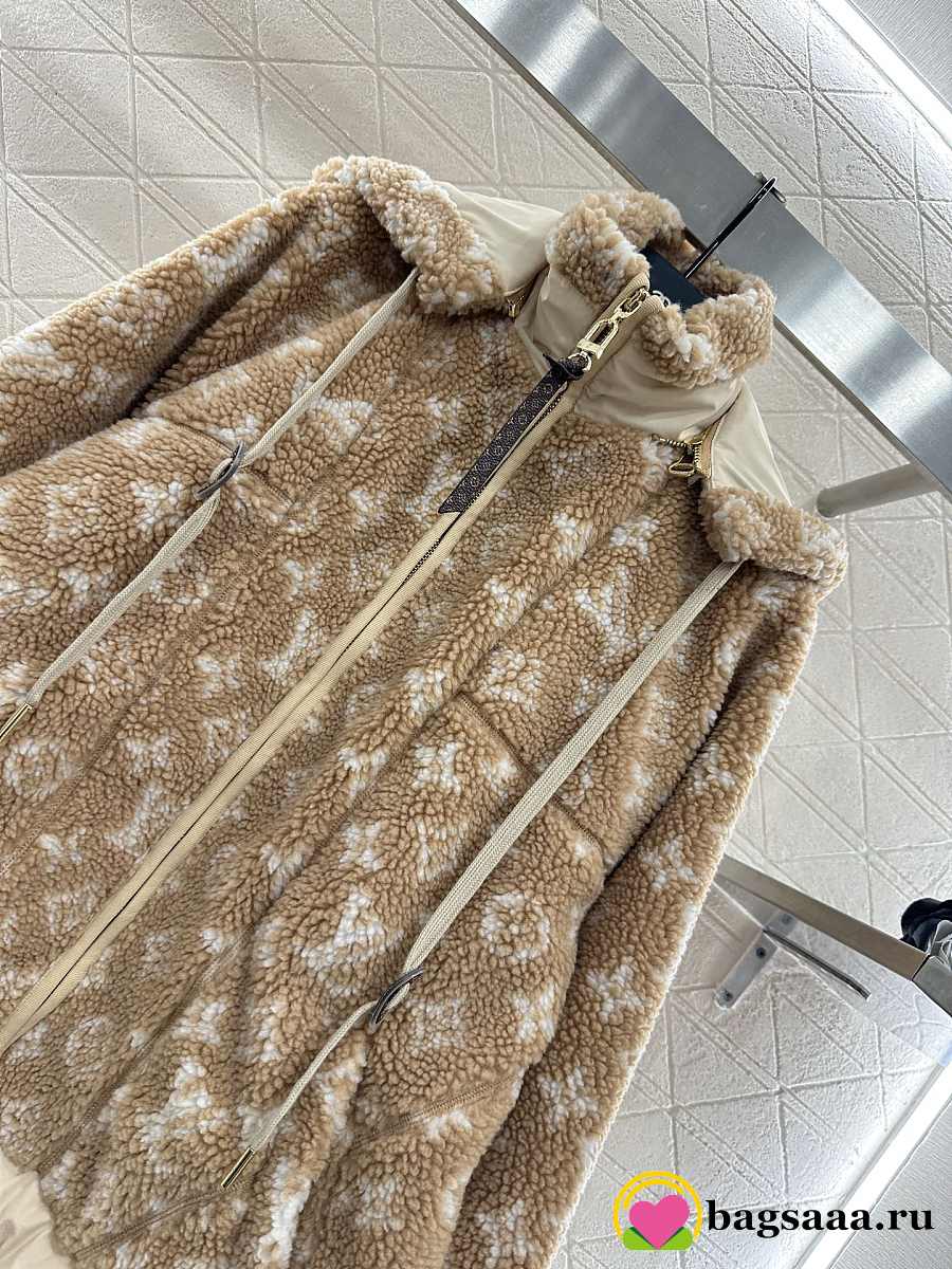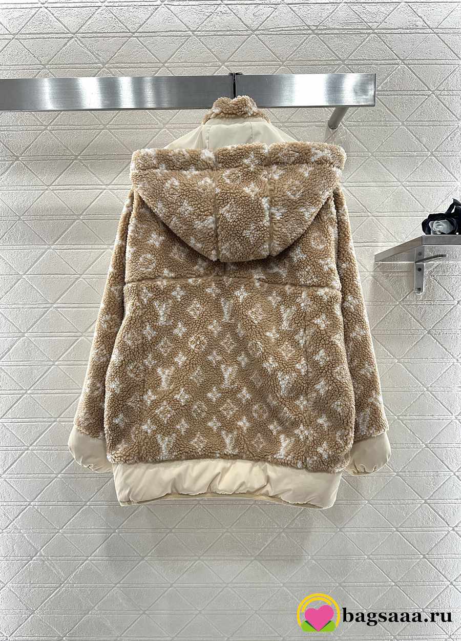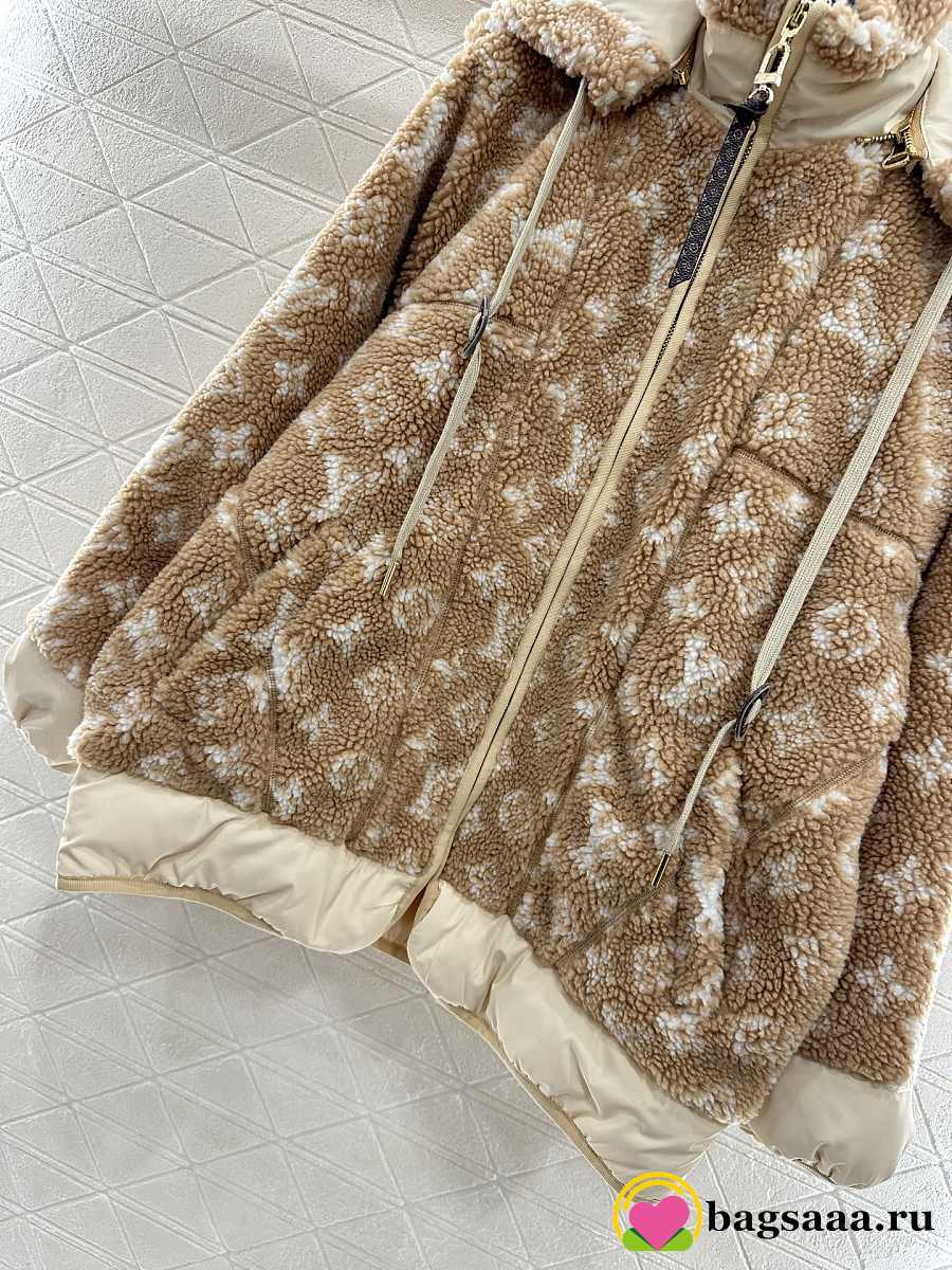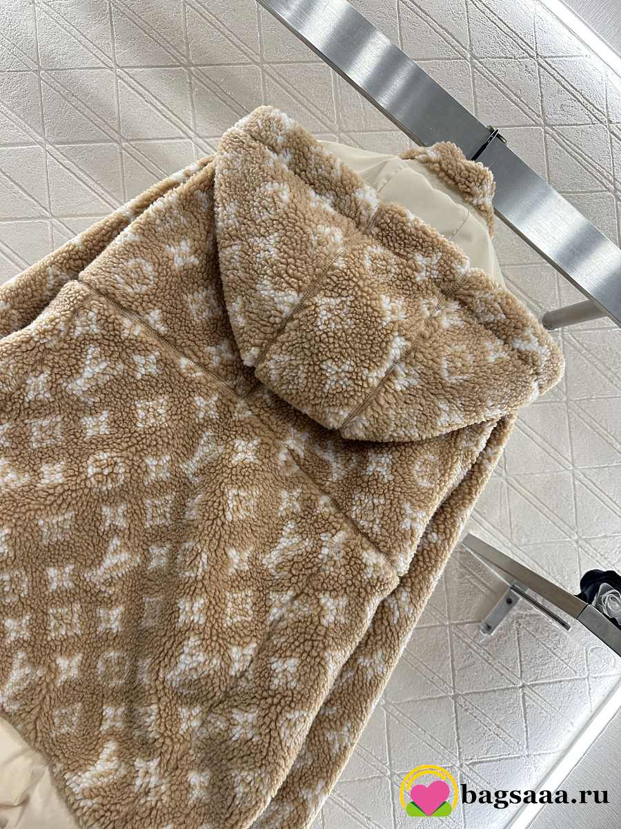 Bagsaaa LV Monogram Fleece Hooded Jacket Light Brown