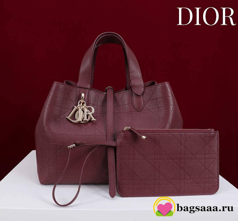 Bagsaaa Medium Dior Toujours Bag Burgundy Flat Macrocannage Calfskin - 28.5cm