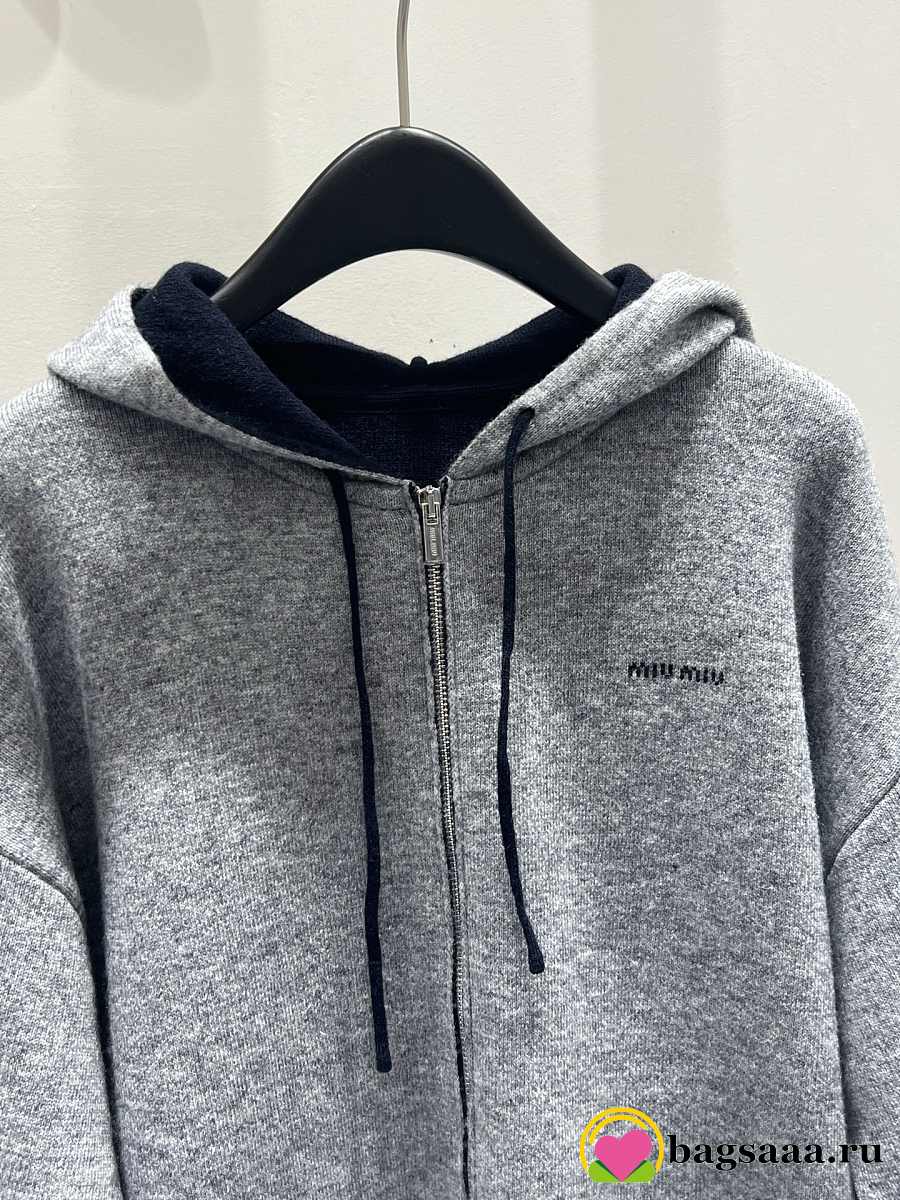 Bagsaaa Miu Miu Cashmere cardigan hoodie gray