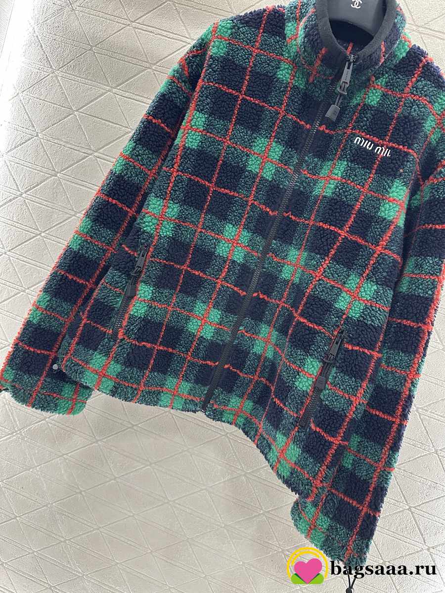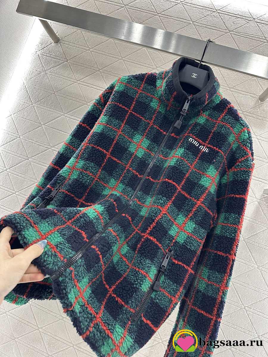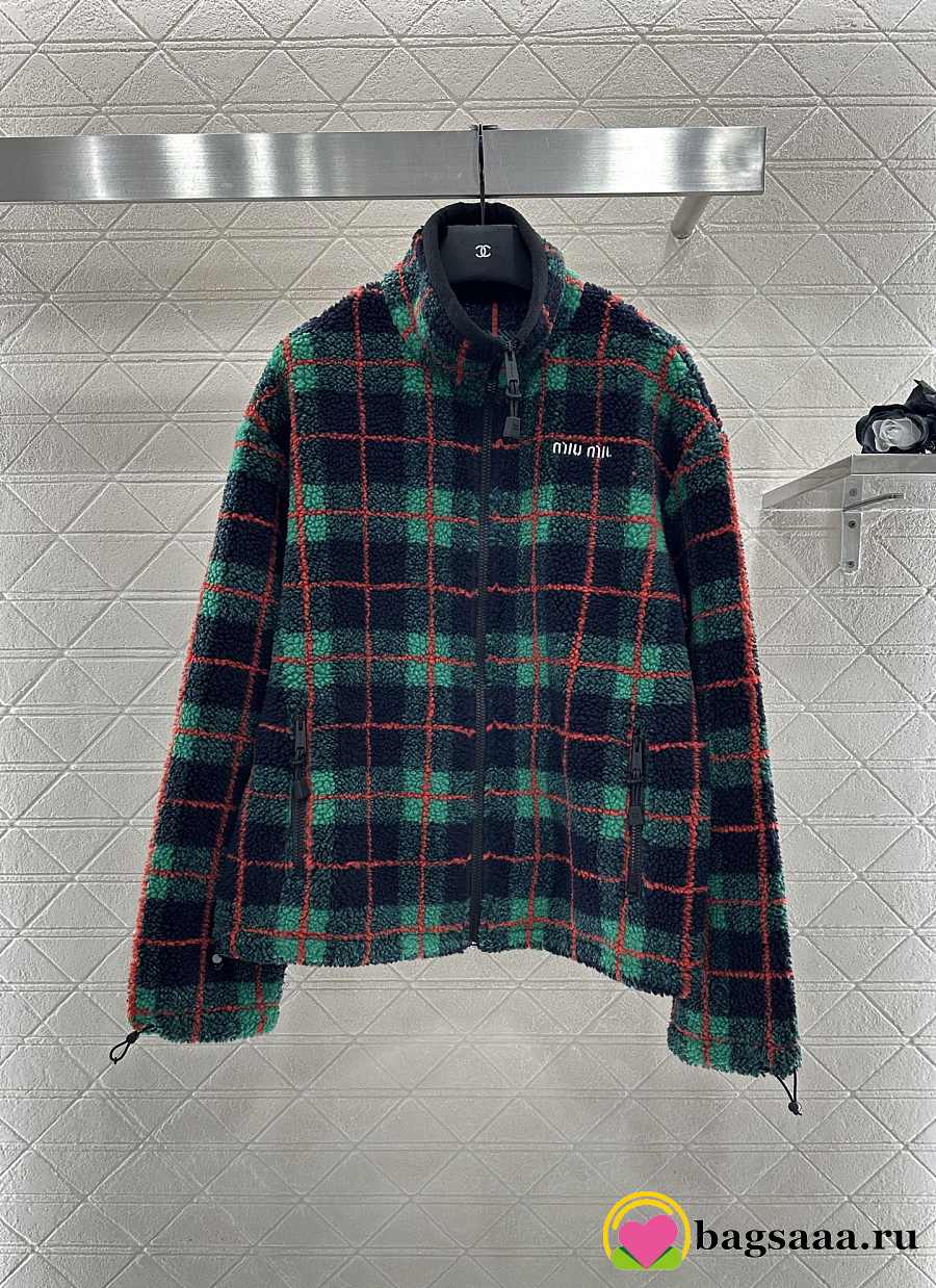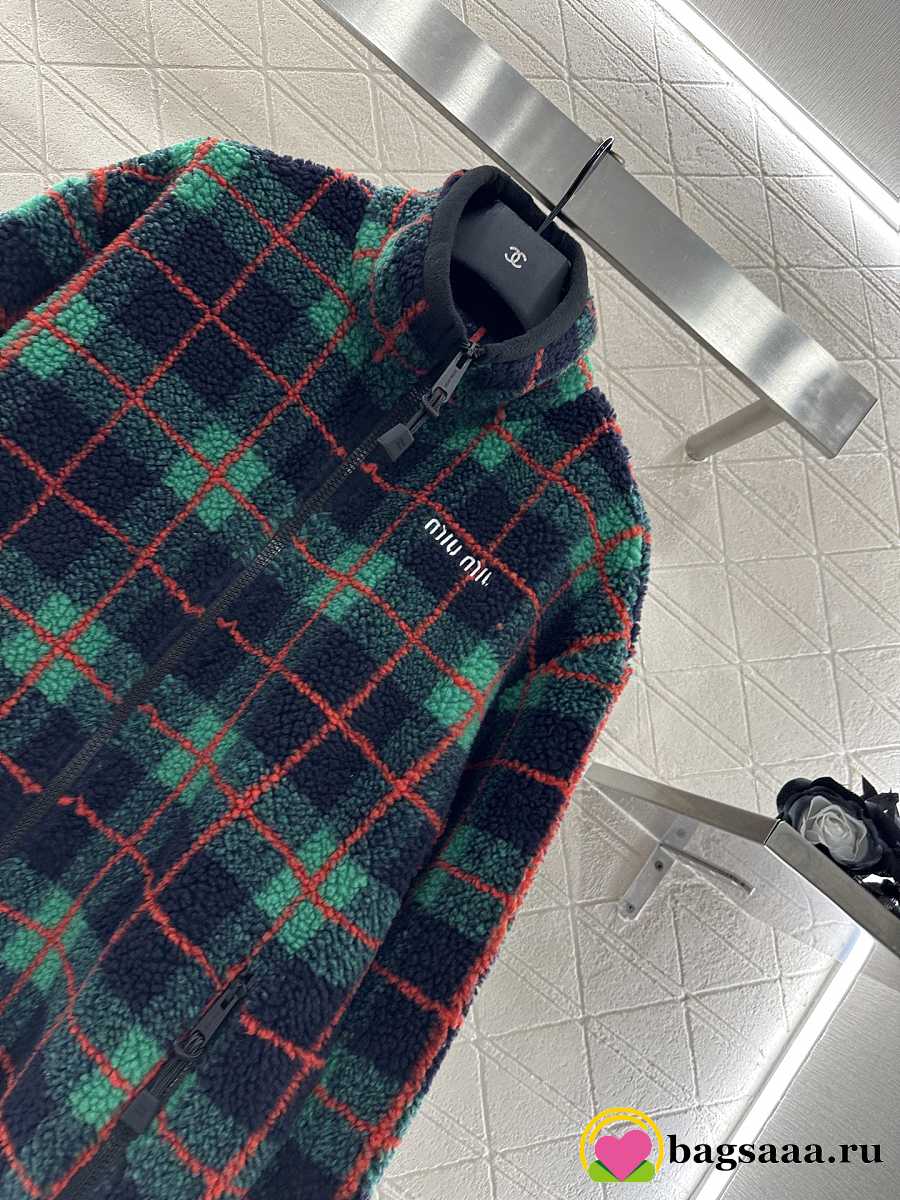 Bagsaaa Miu Miu Checked Teddy Zipper Jacket