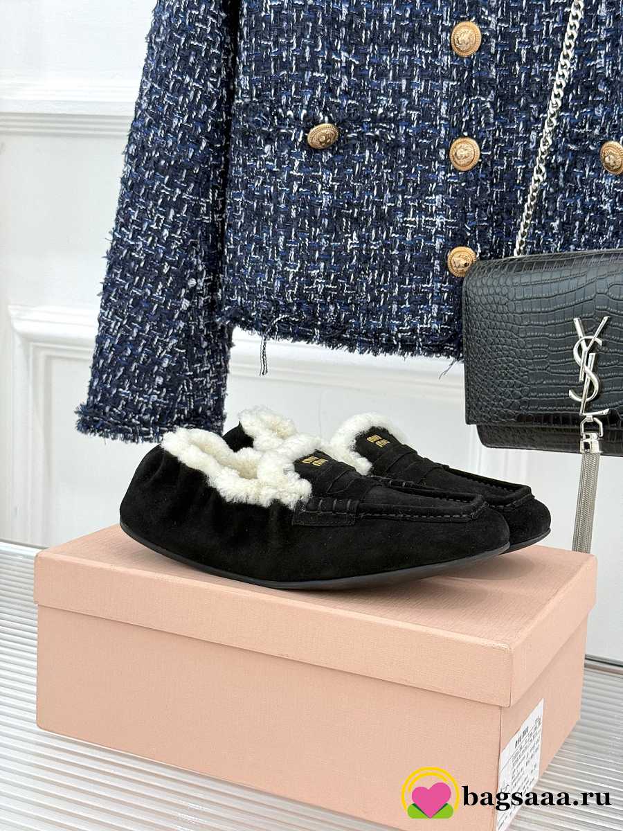 Bagsaaa Miu Miu shearling-lined suede penny loafers in black