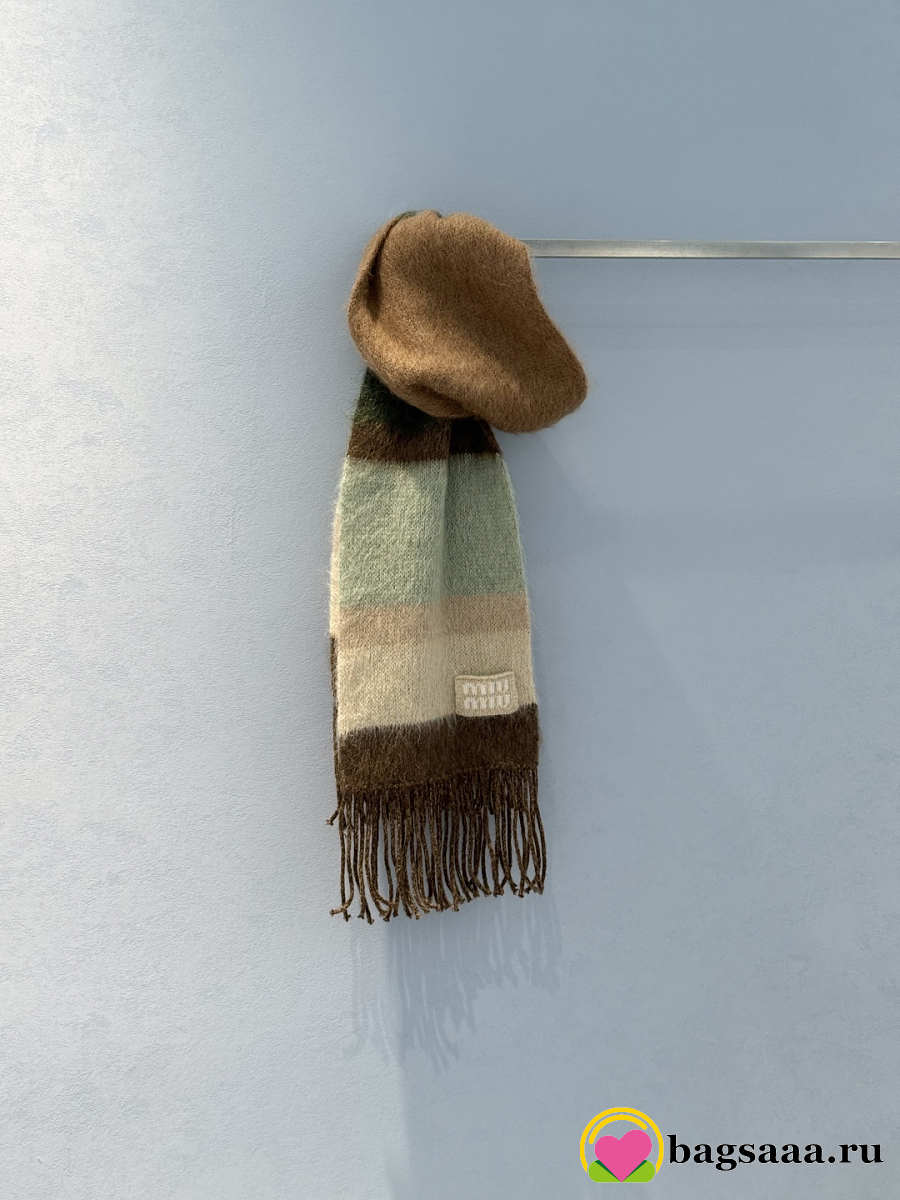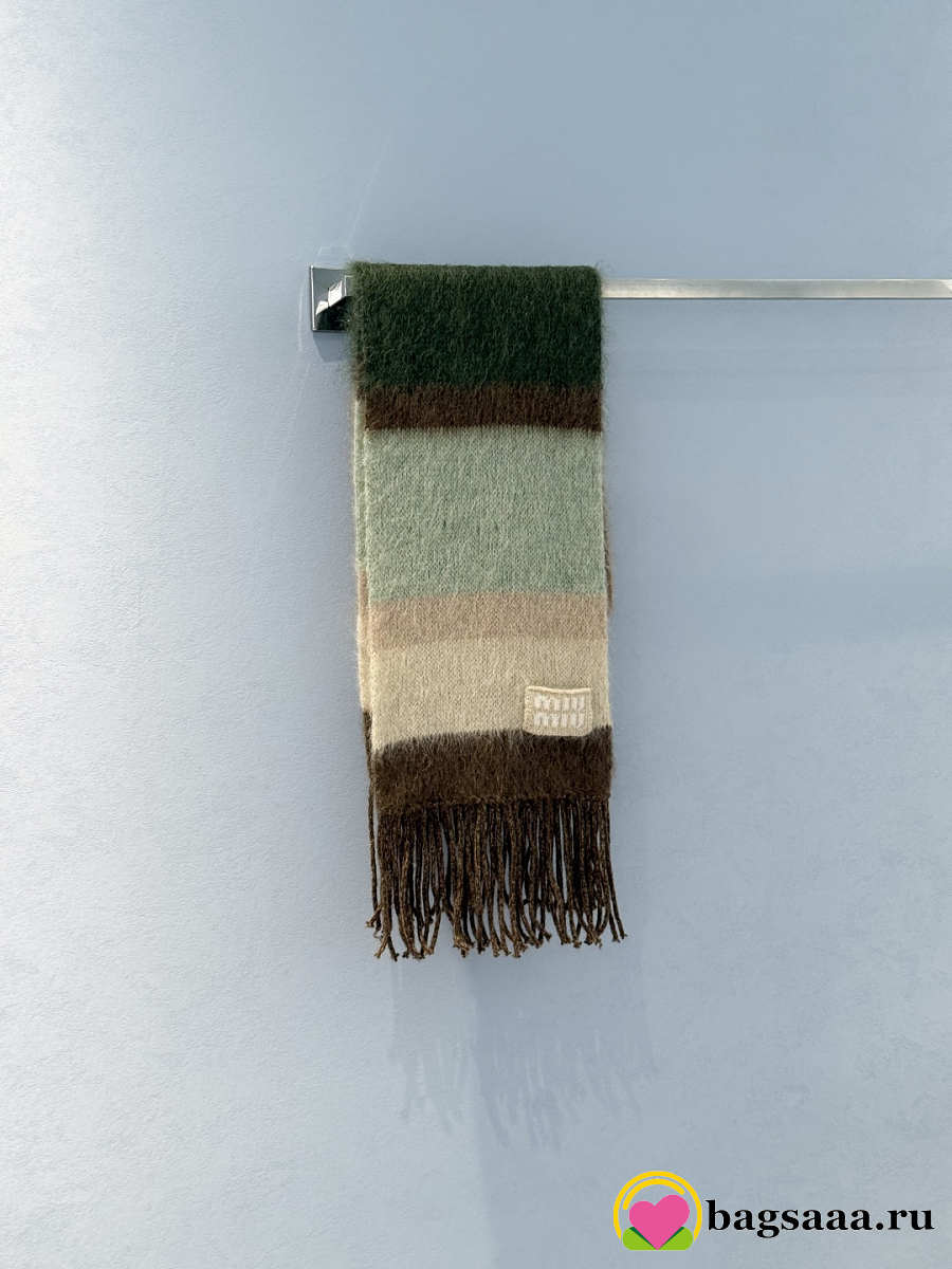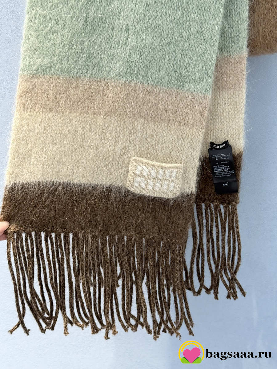 Bagsaaa Miu Miu striped wool and mohair scarf with fringes multi-color