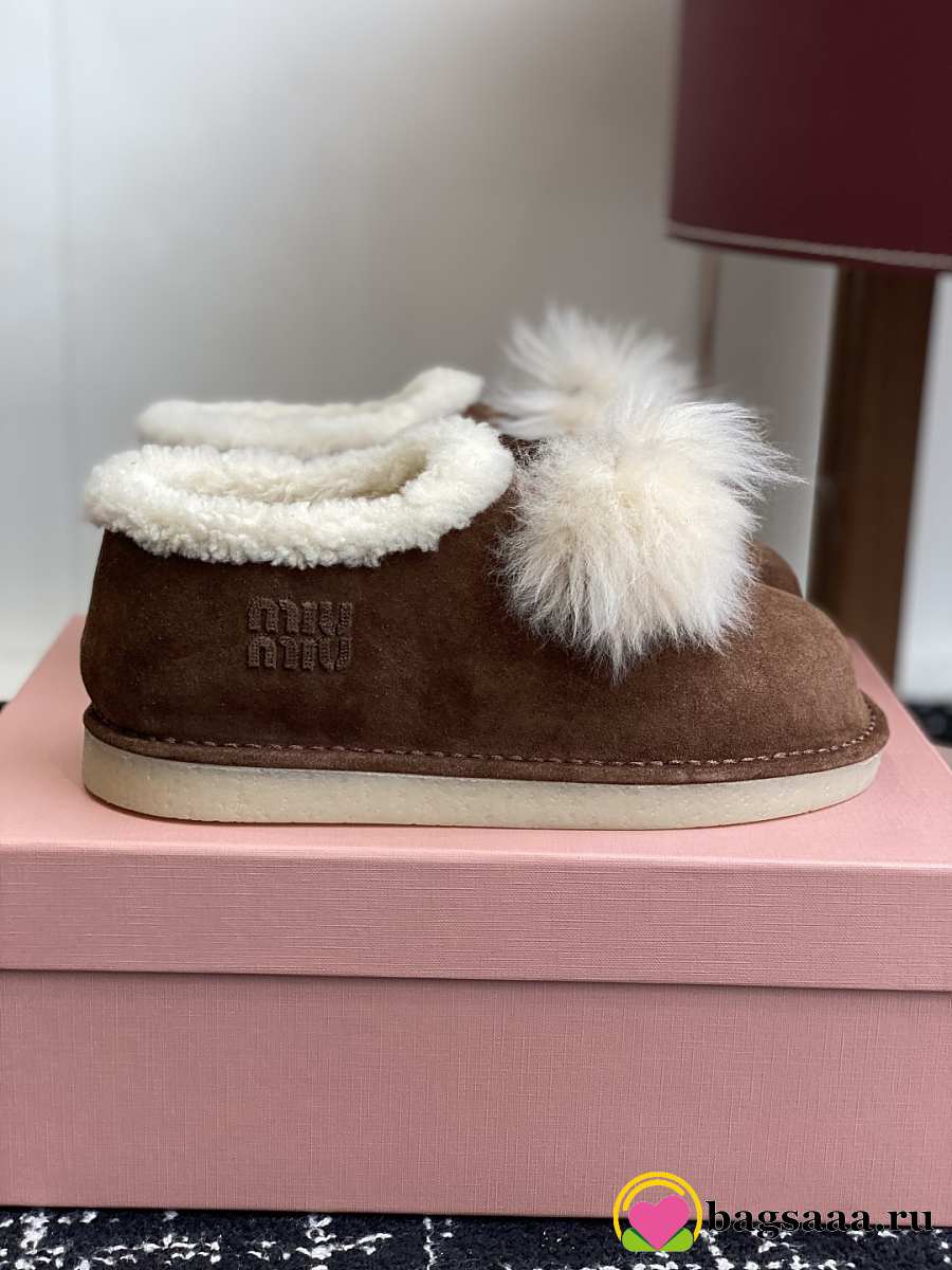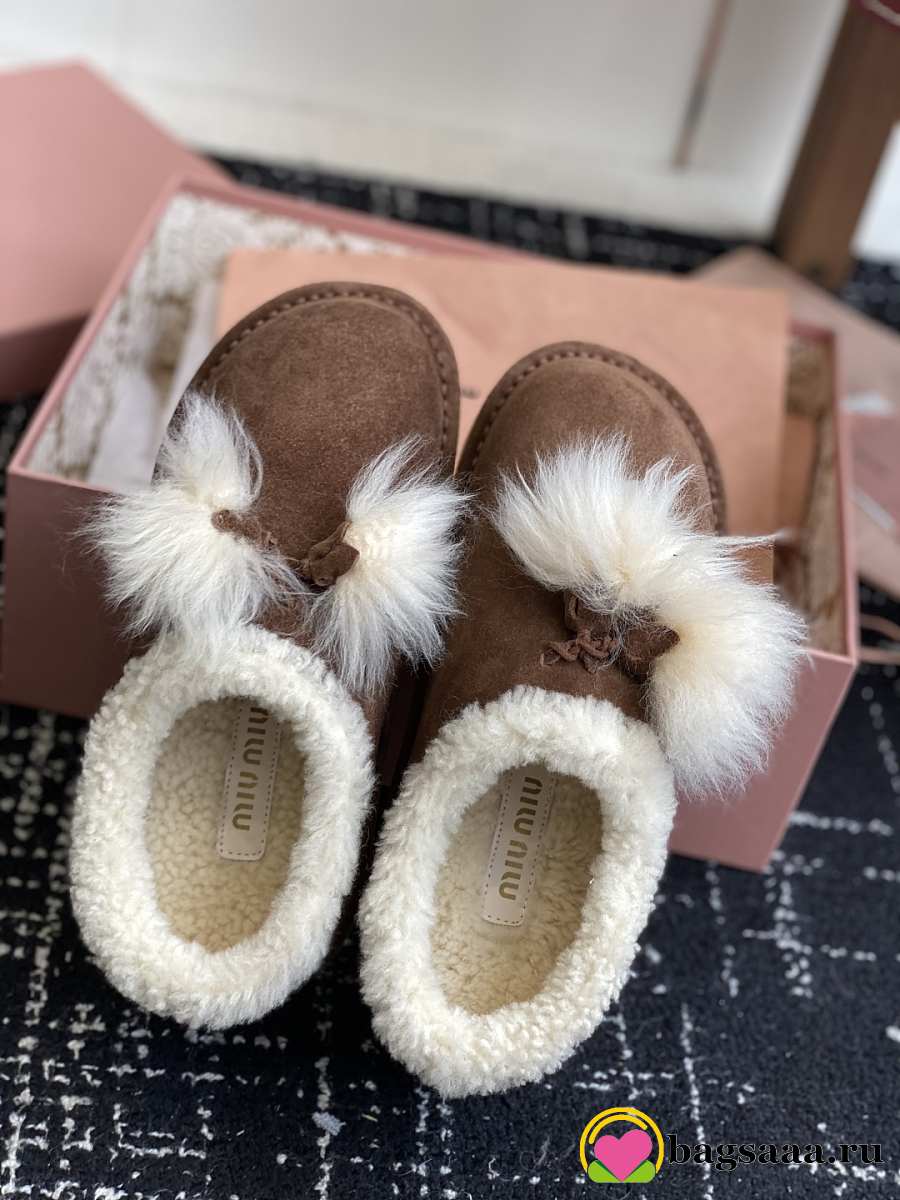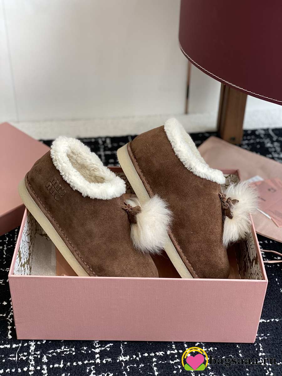 Bagsaaa Miu Miu Suede Shearling Slippers brown