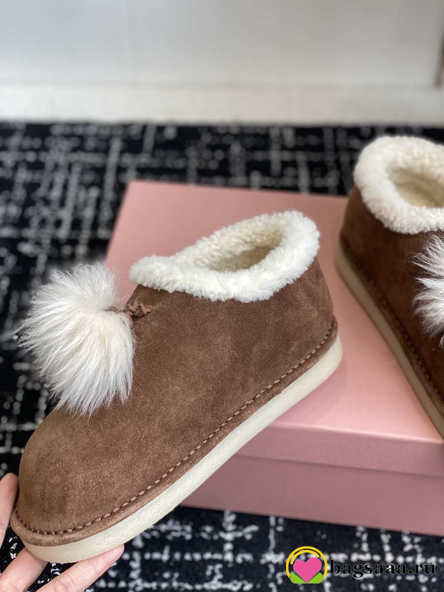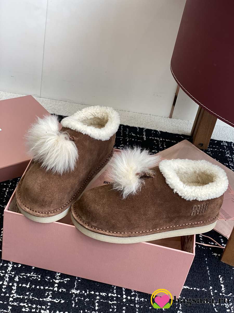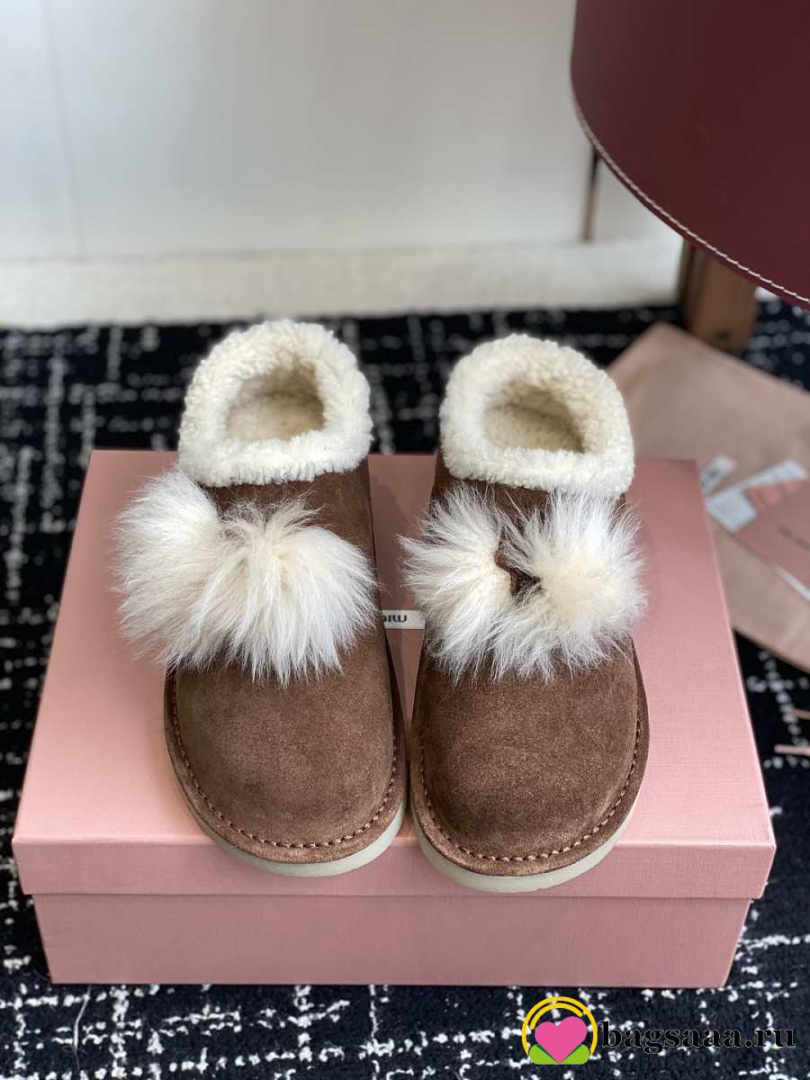 Bagsaaa Miu Miu Suede Shearling Slippers brown