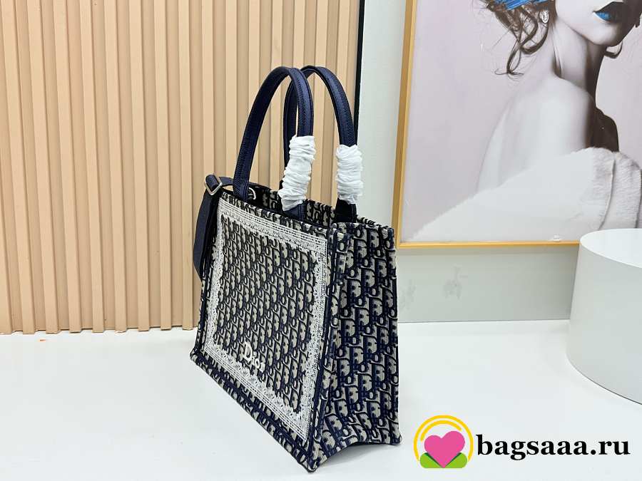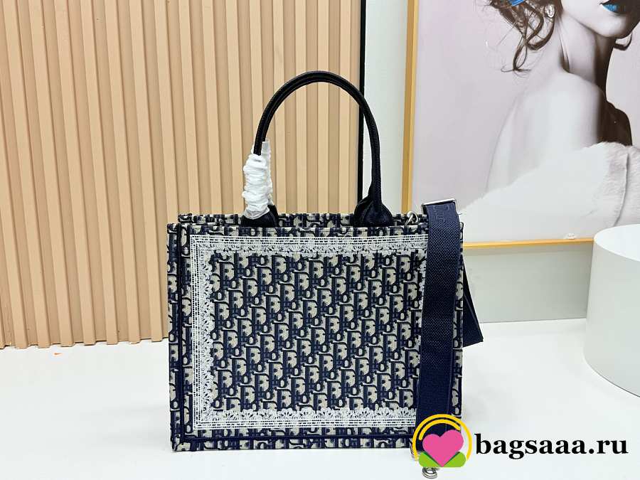 Bagsaaa New Collection 2026 Medium Dior Book Tote with Strap Blue Dior Oblique & White Lace 36cm