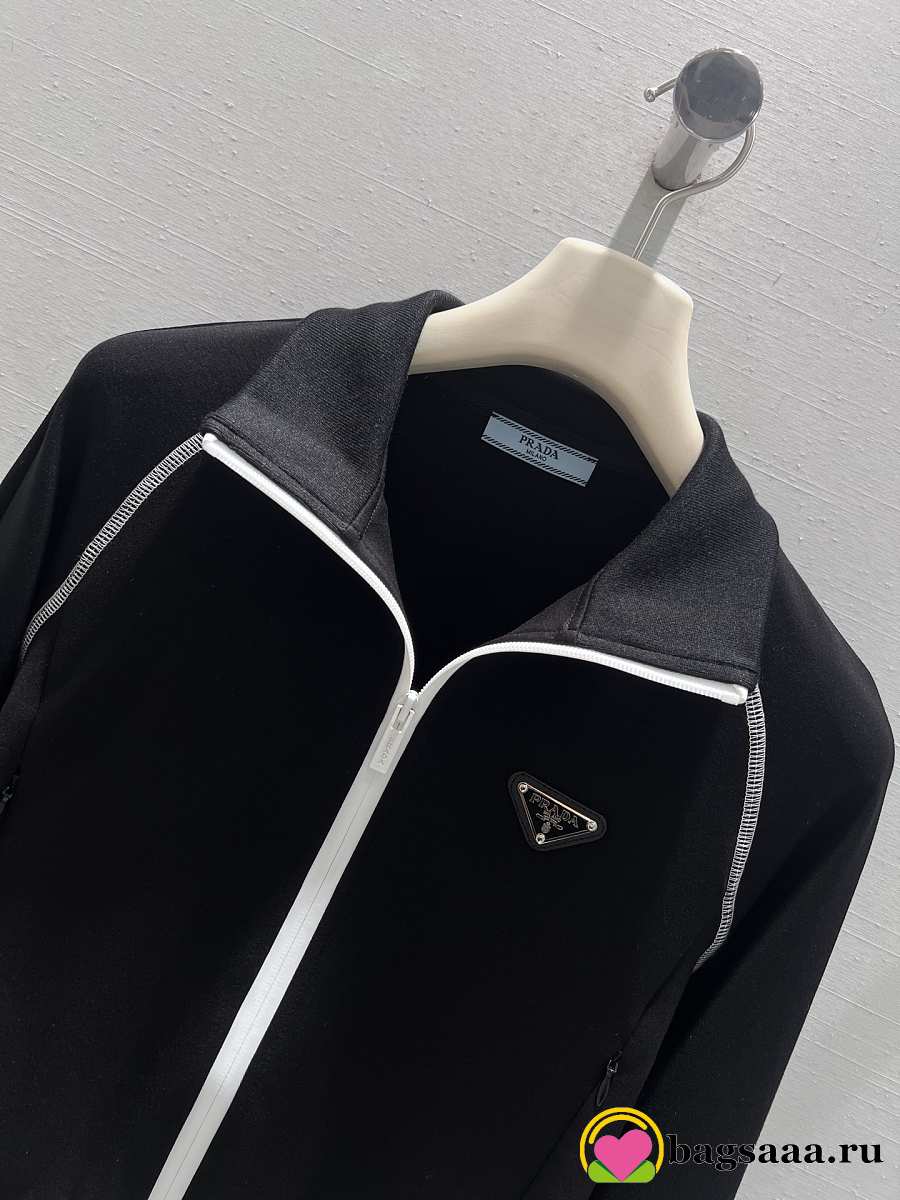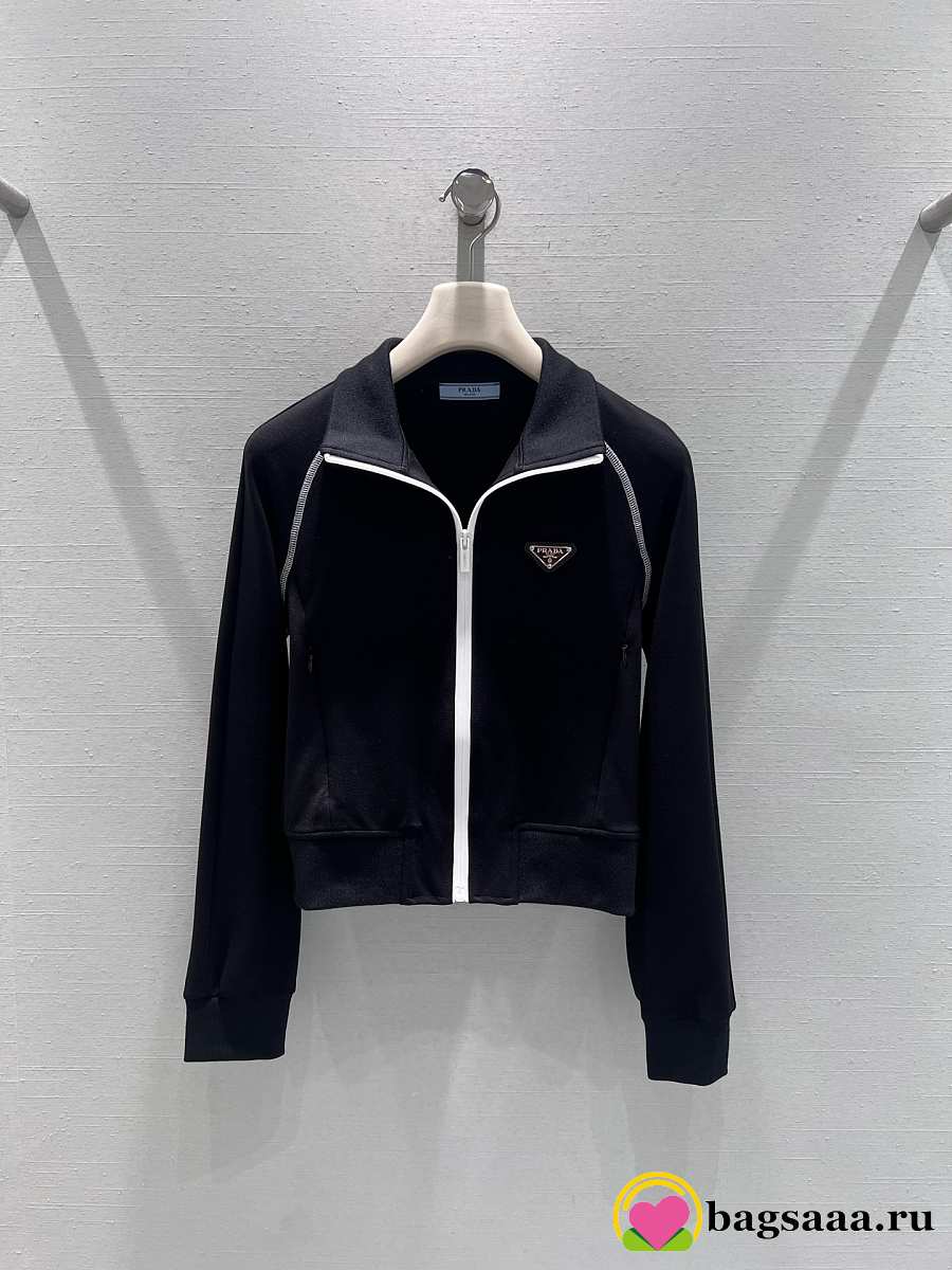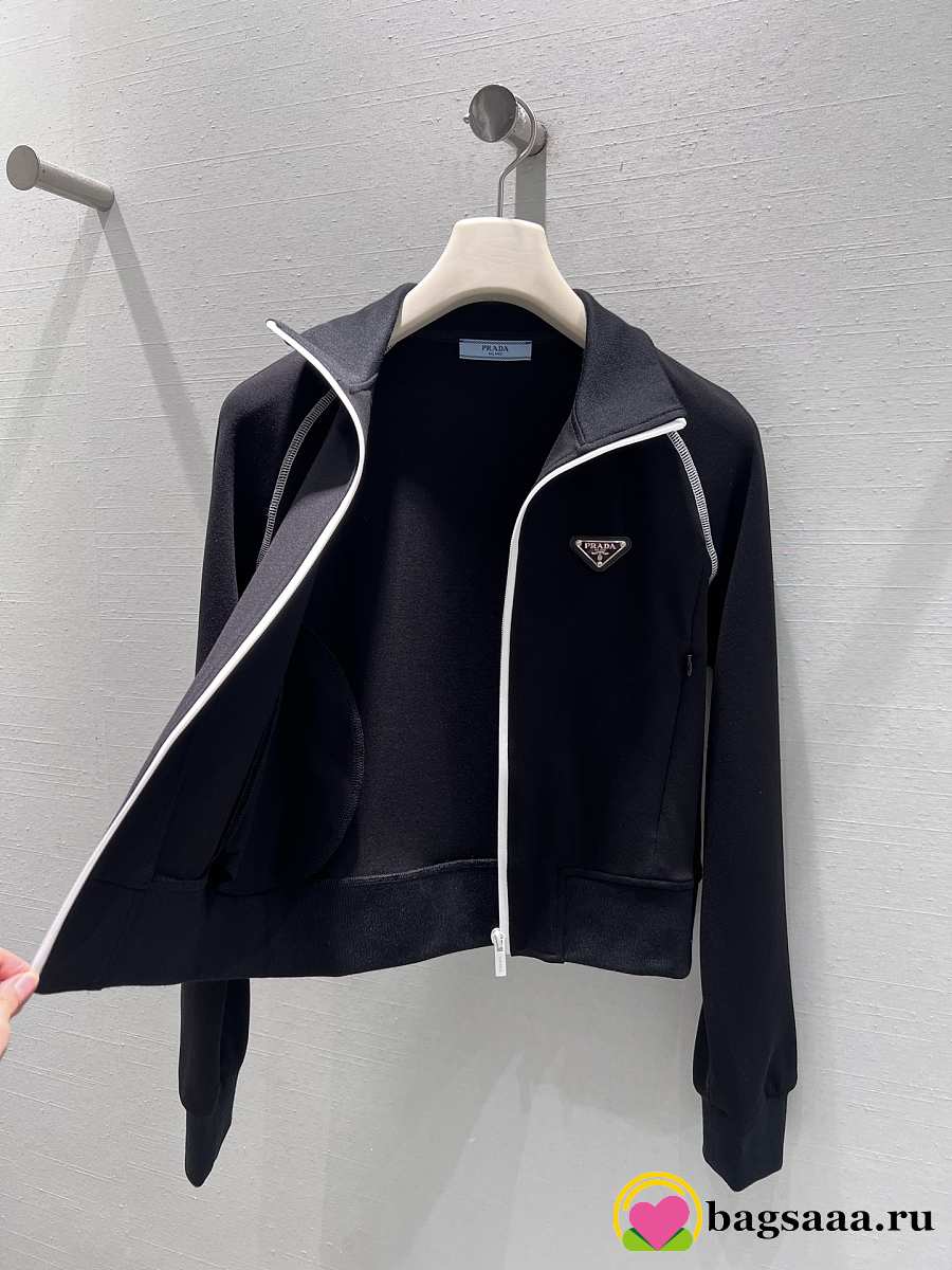 Bagsaaa Prada black Re-Nylon blouson jacket with white piping details