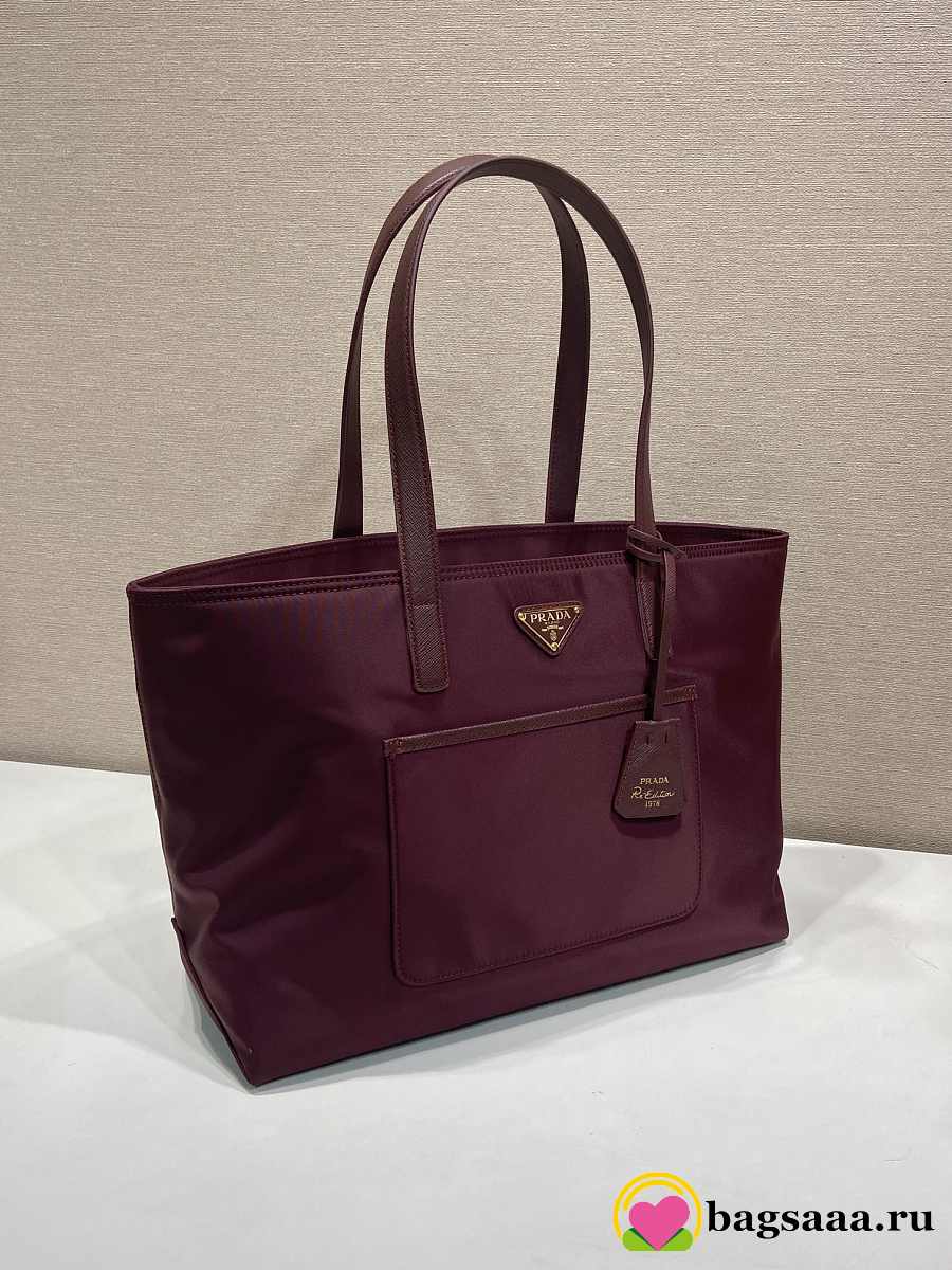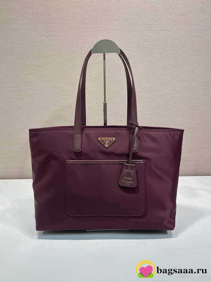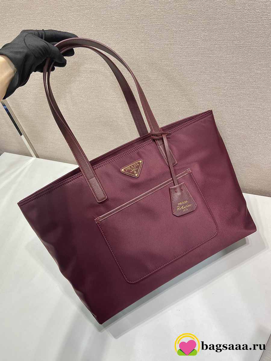 Bagsaaa Prada Re-Edition 1978 medium Re-Nylon and Saffiano leather tote bag 1BG555 dark red - 35cm