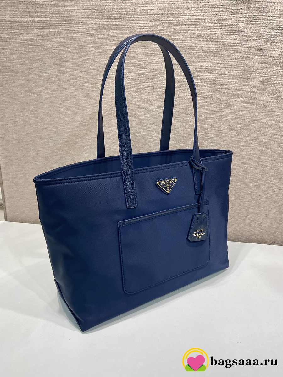 Bagsaaa Prada Re-Edition 1978 medium Re-Nylon and Saffiano leather tote bag 1BG555 navy blue - 35cm