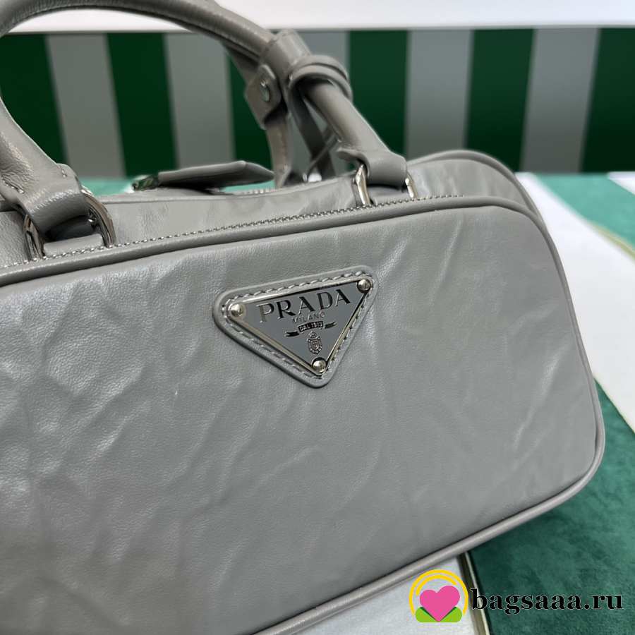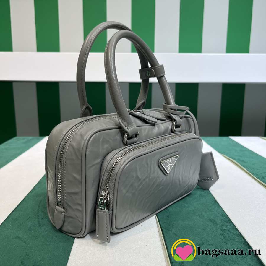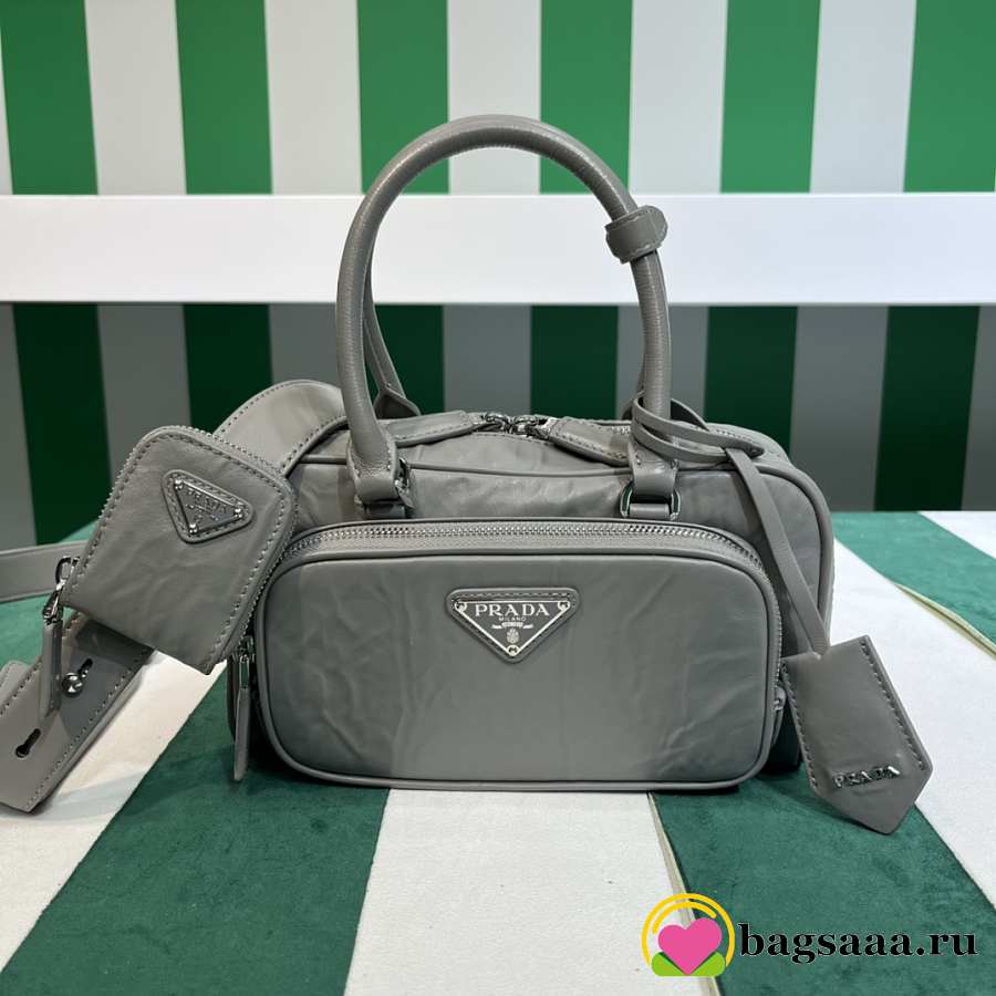 Bagsaaa Prada small antique nappa leather multi-pocket top-handle bag gray - 24cm