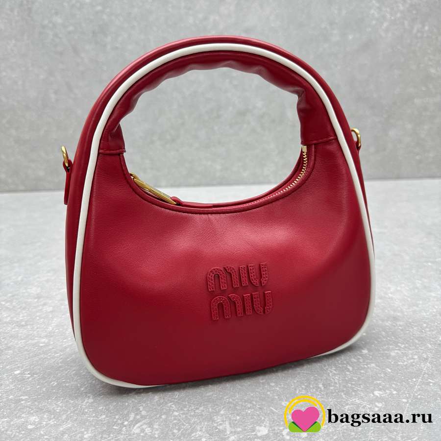 Bagsaaa red Miu Miu Wander bag in smooth leather with white contrast piping - 23cm