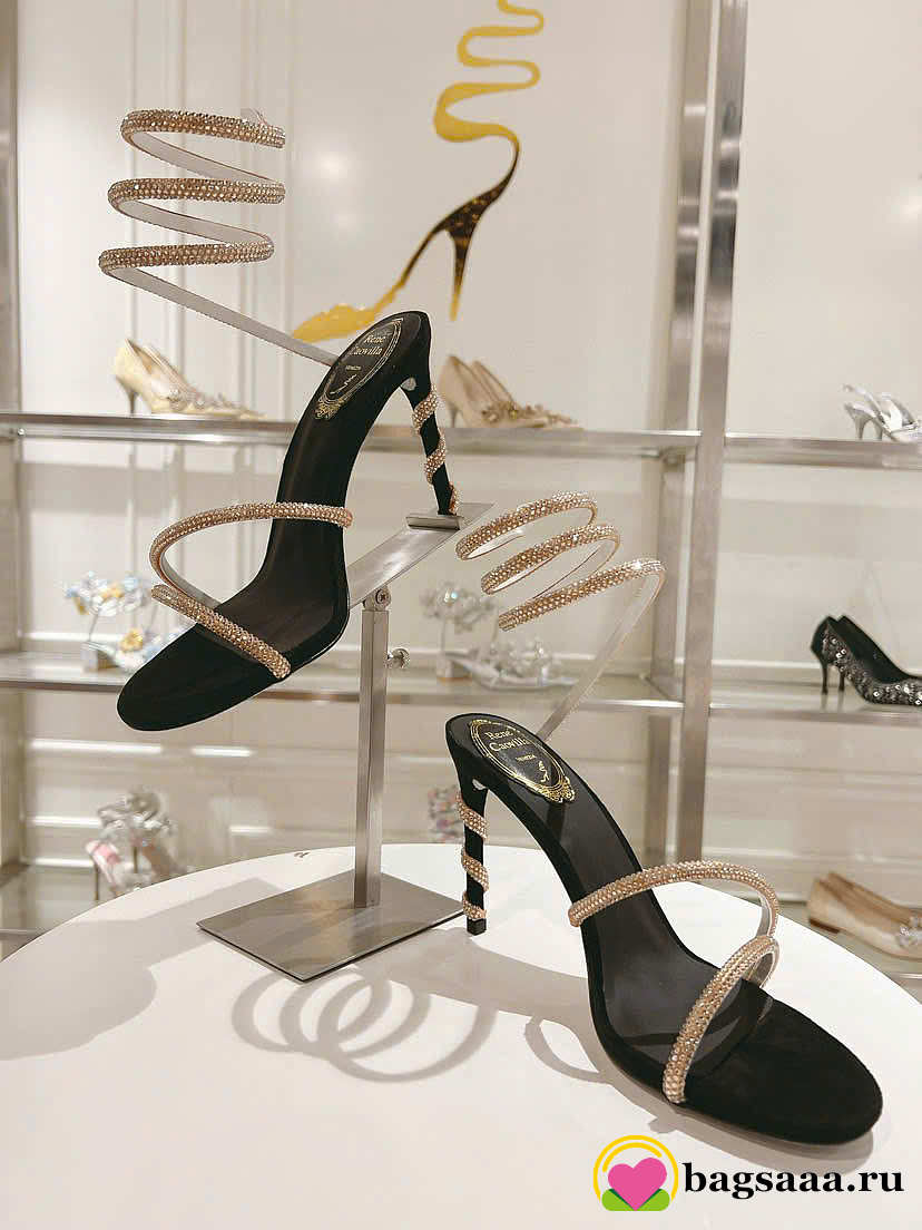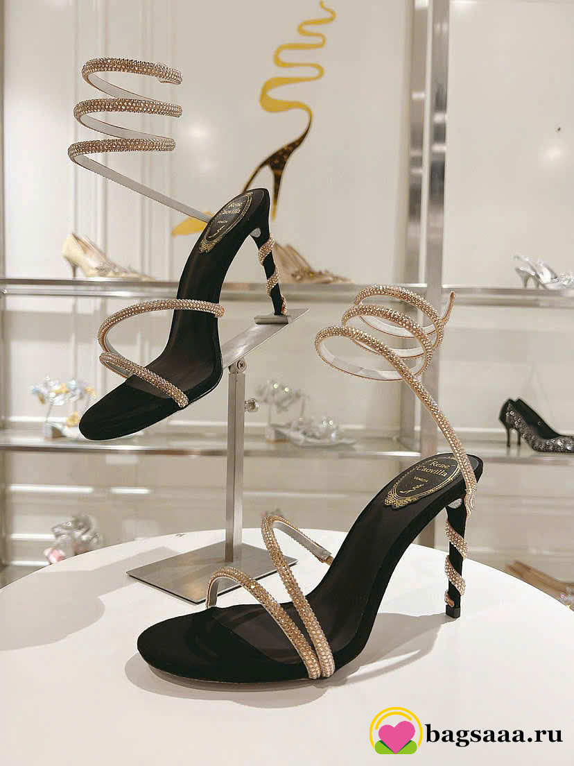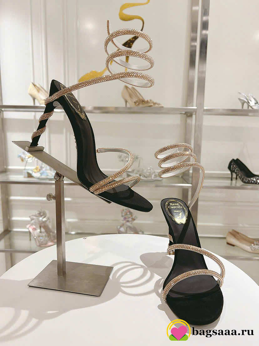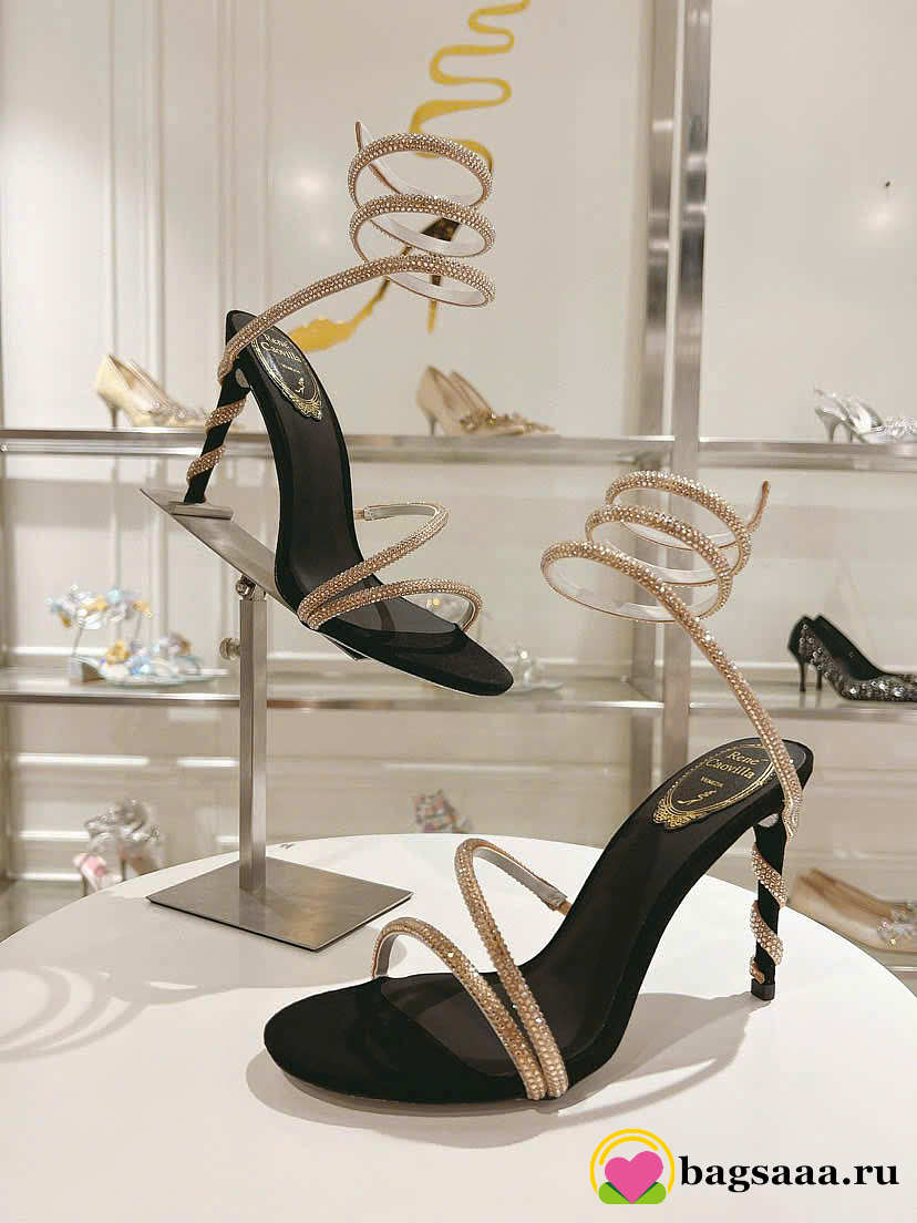 Bagsaaa René Caovilla Margot Embellished Sandals in black and gold
