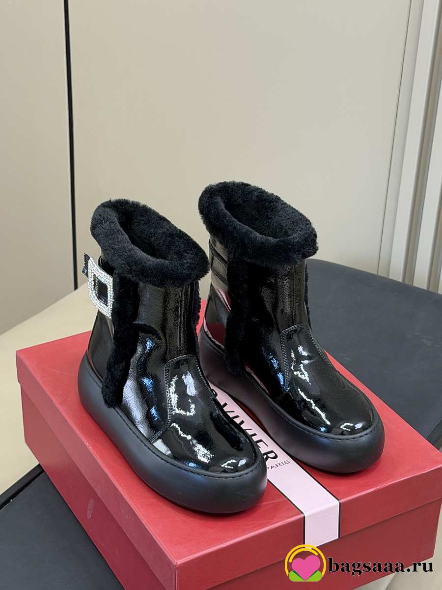 Bagsaaa Roger Vivier Snow ankle boots with a crystal buckle & black shearling