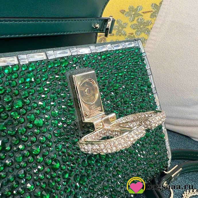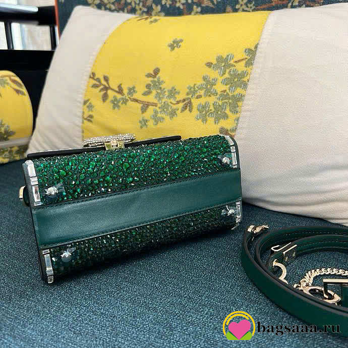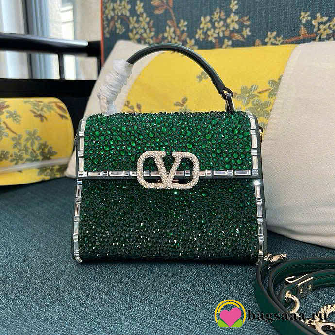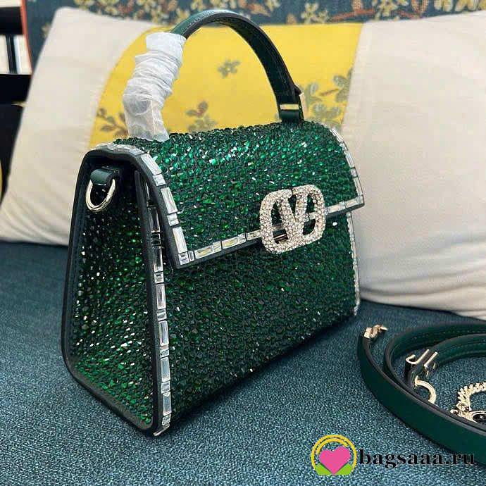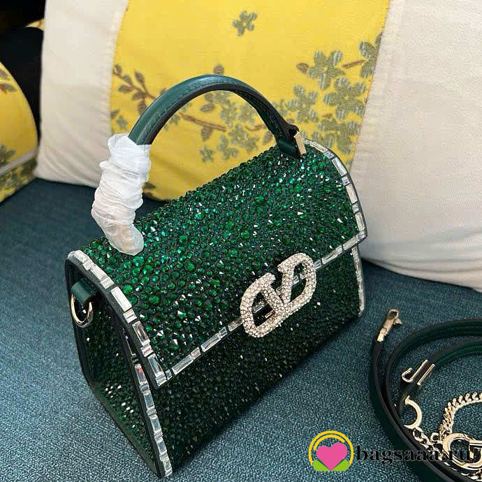 Bagsaaa Valentino Garavani Crystal Embroidered Mini Vsling Top Handle Green - 19cm