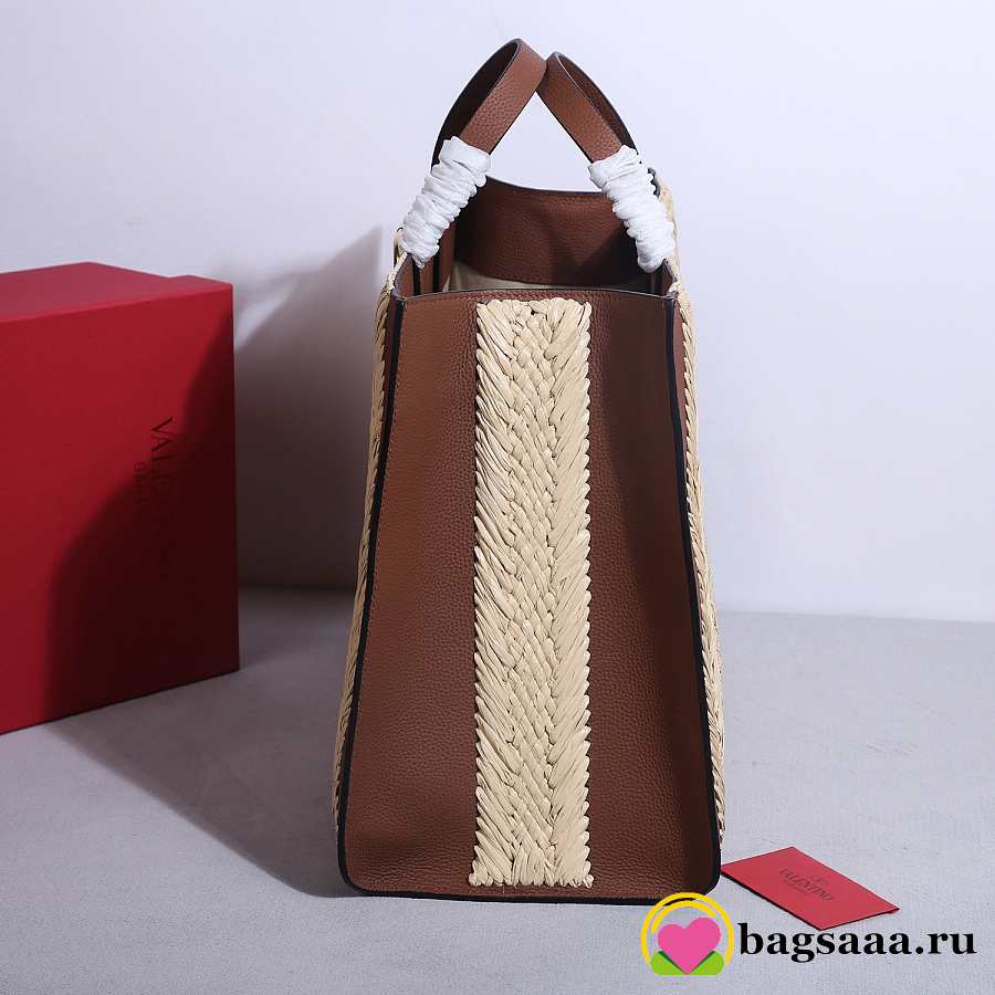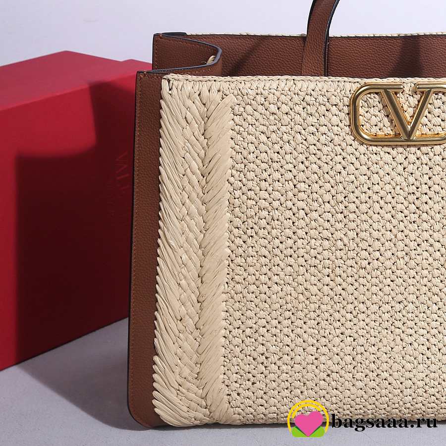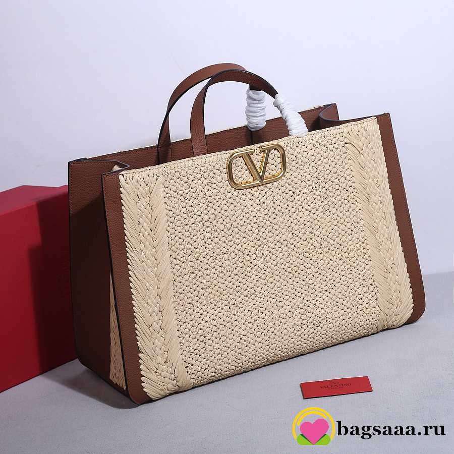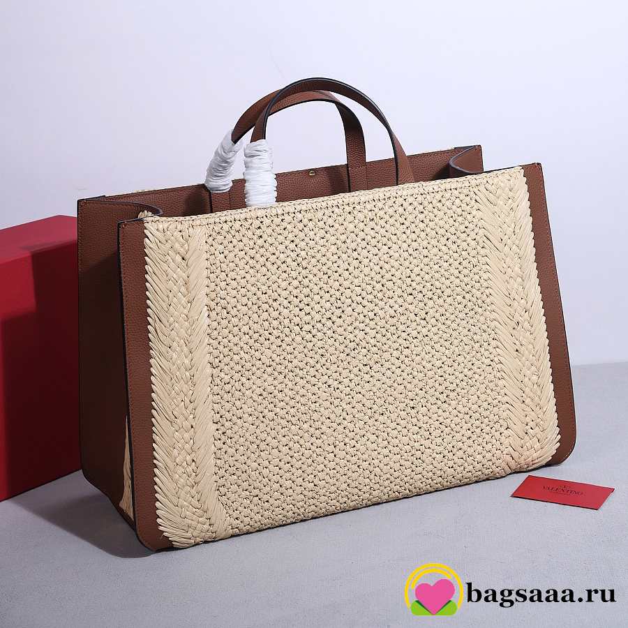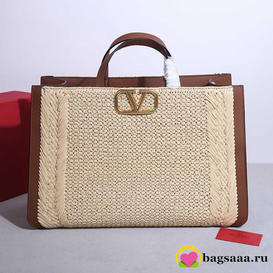 Bagsaaa Valentino Garavani VLogo Signature raffia tote bag with brown leather - 48cm