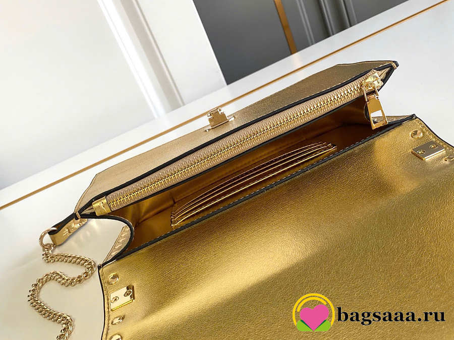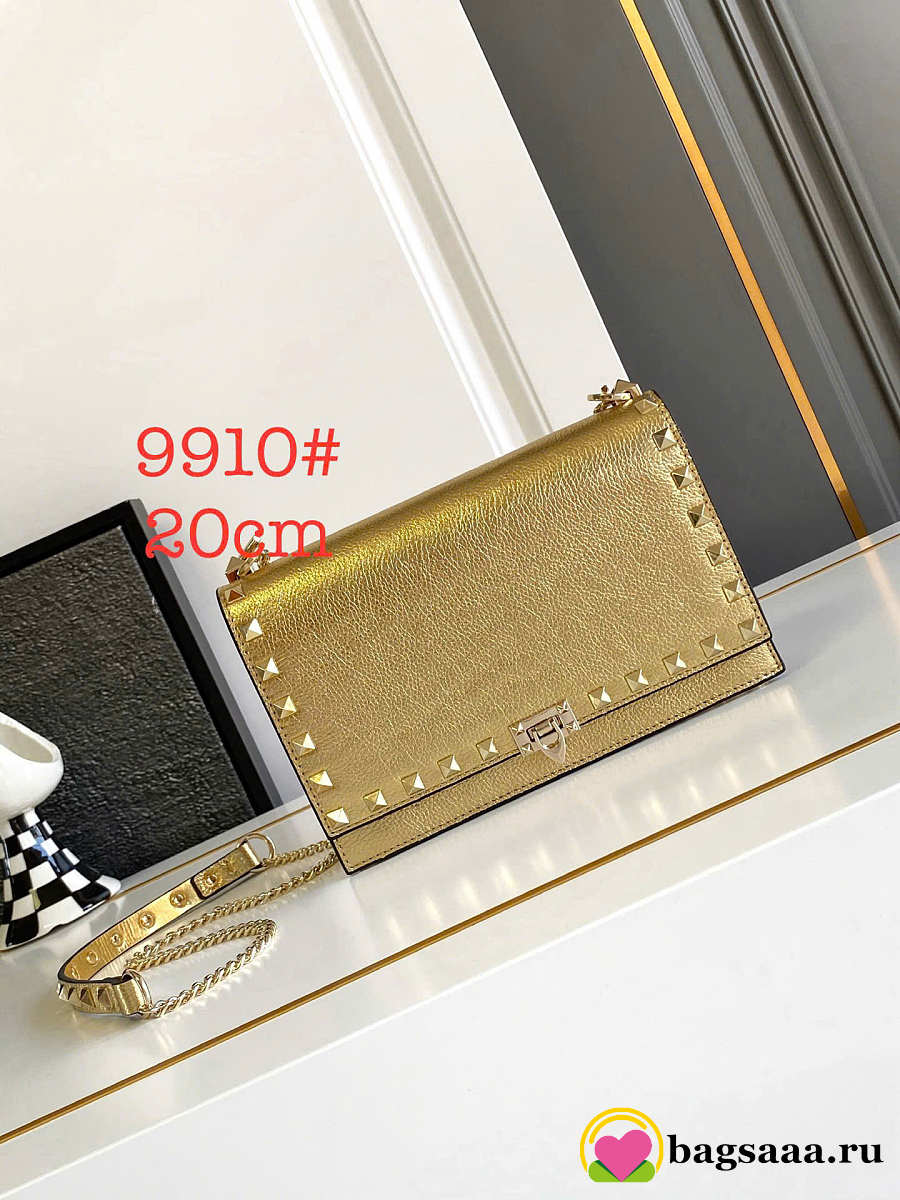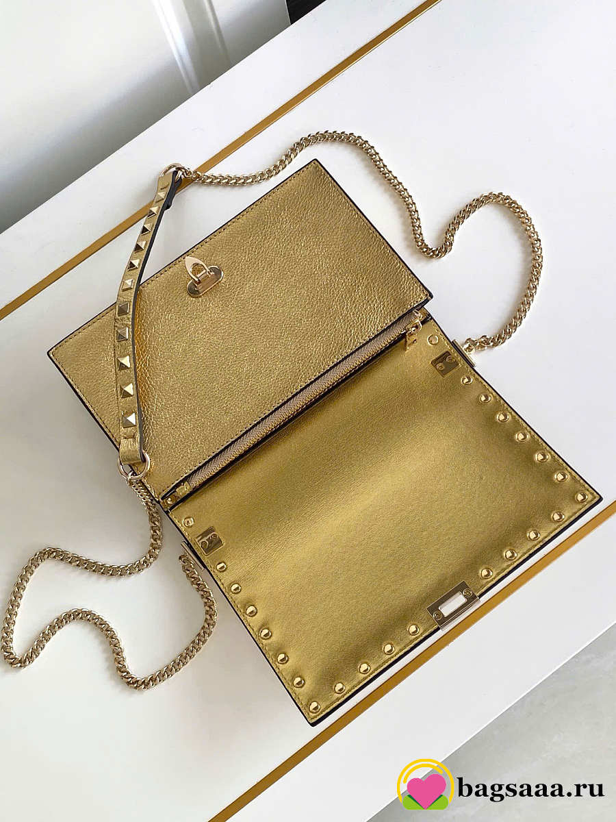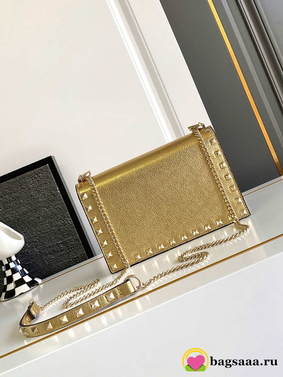 Bagsaaa Valentino Rockstud Mini Calfskin Bag With Chain In Laminated Grainy Calfskin - 18.5cm