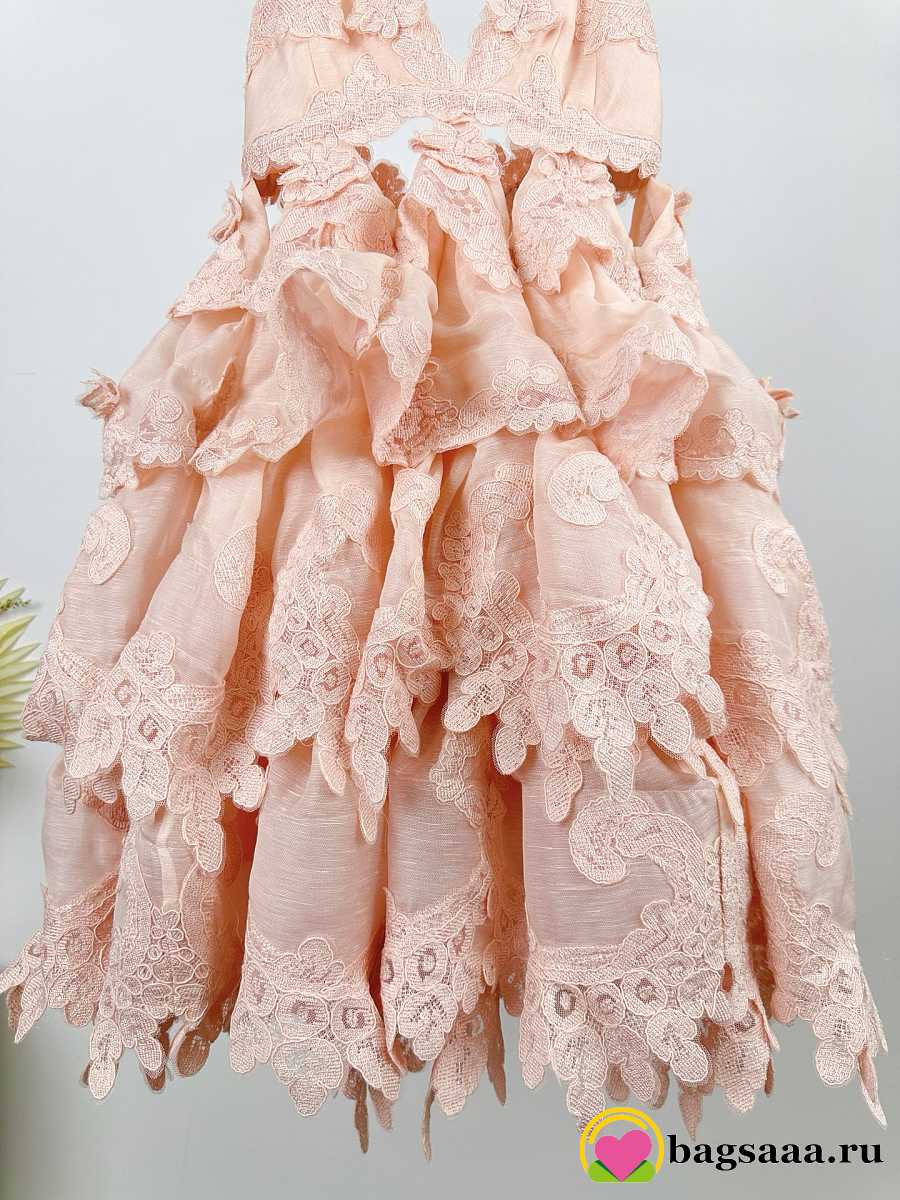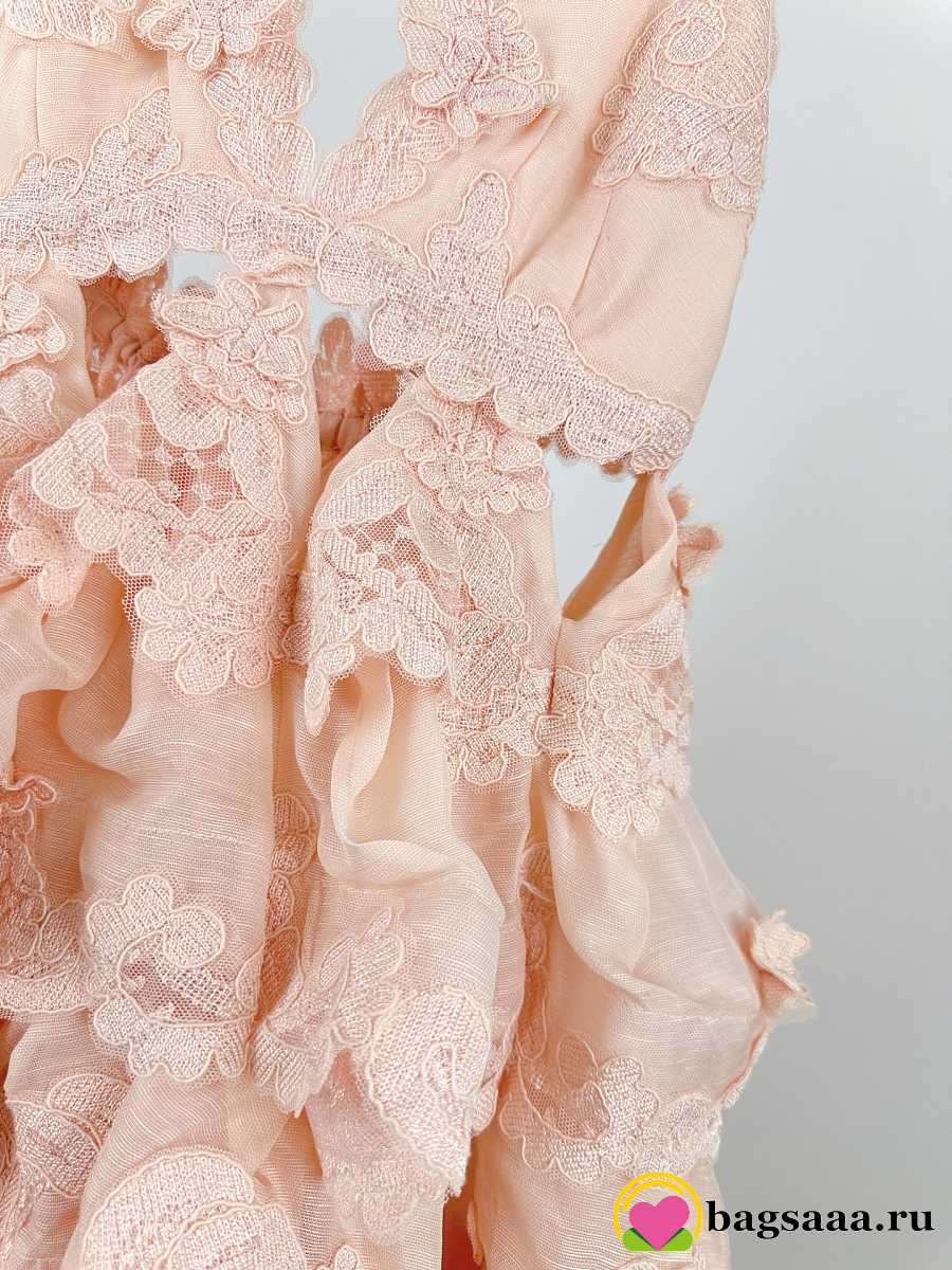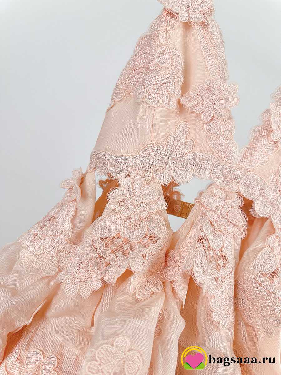Bagsaaa Zimmermann Crush Lace-Trim Tiered Linen-Silk Blend Maxi Dress in Pale Pink