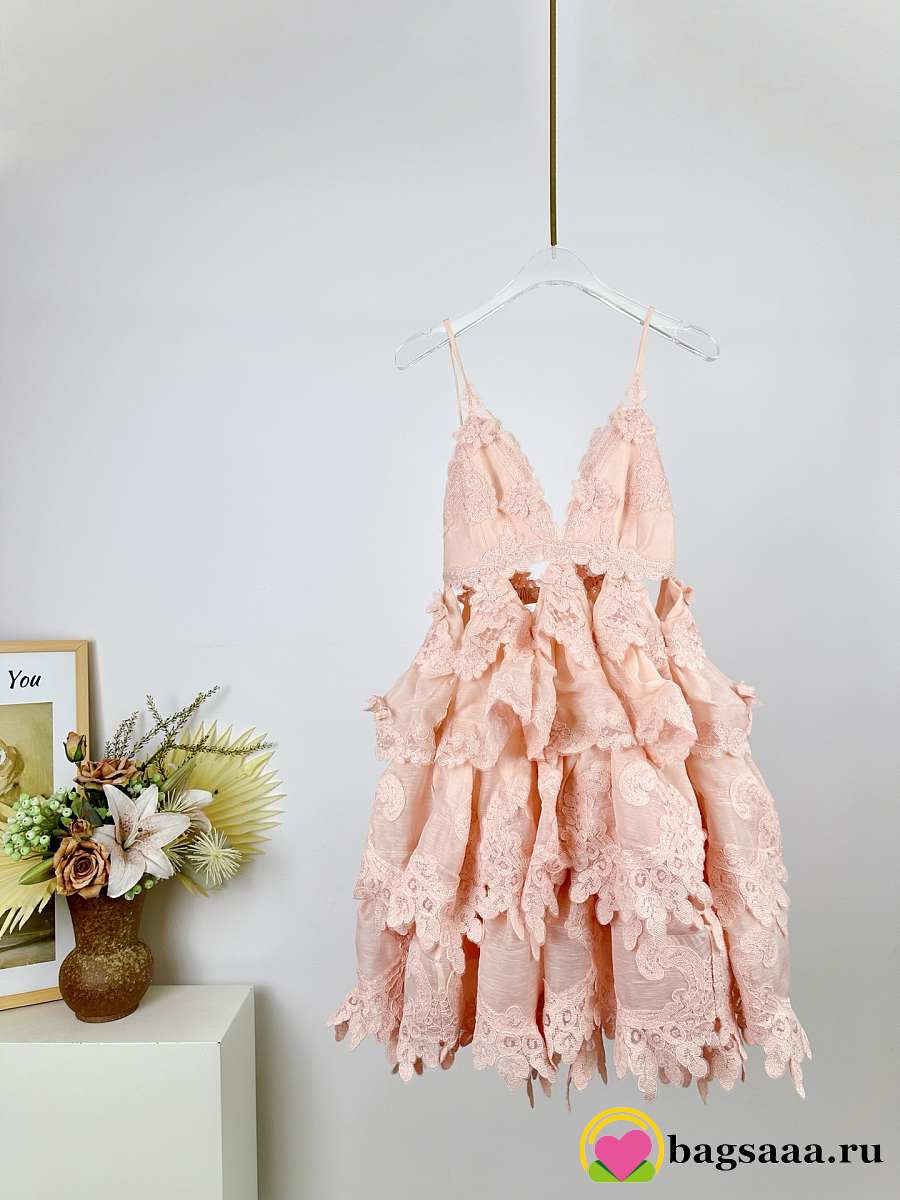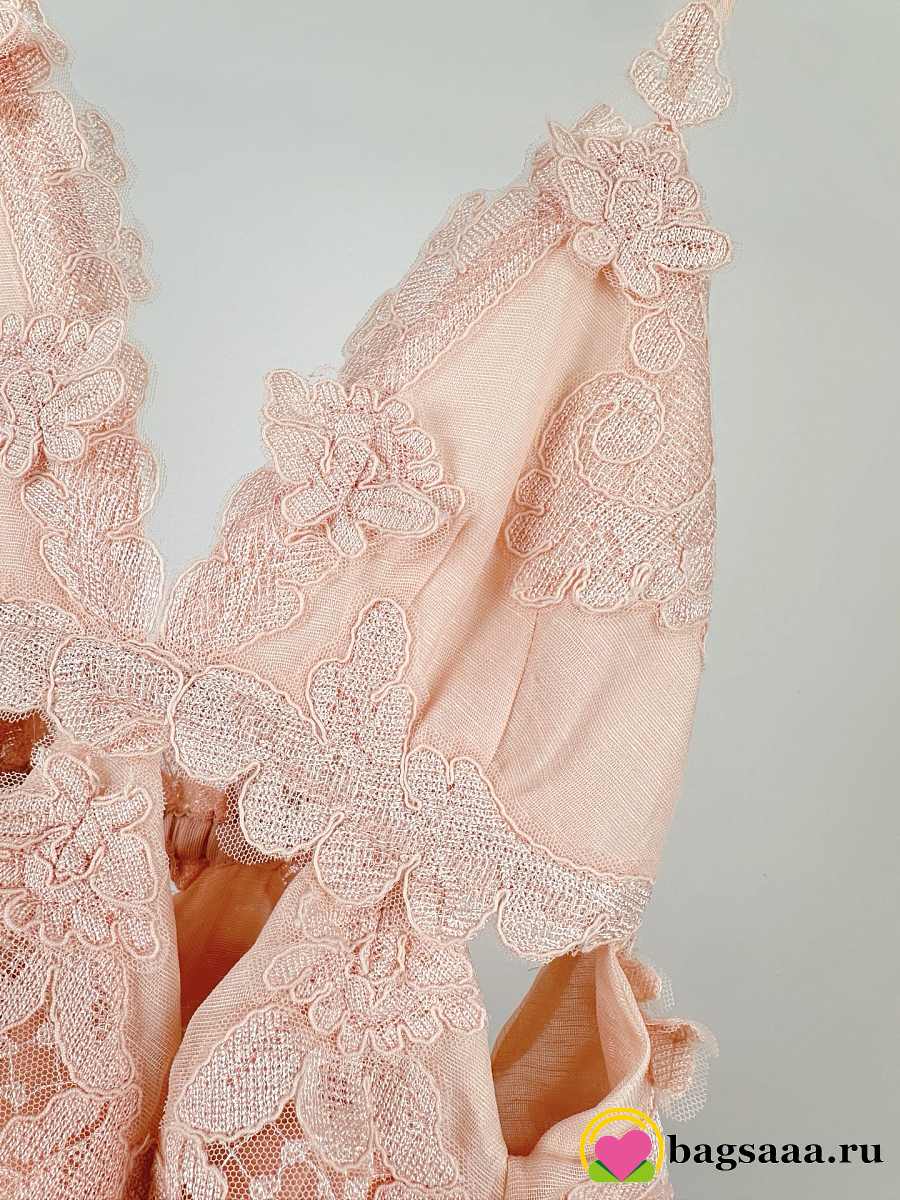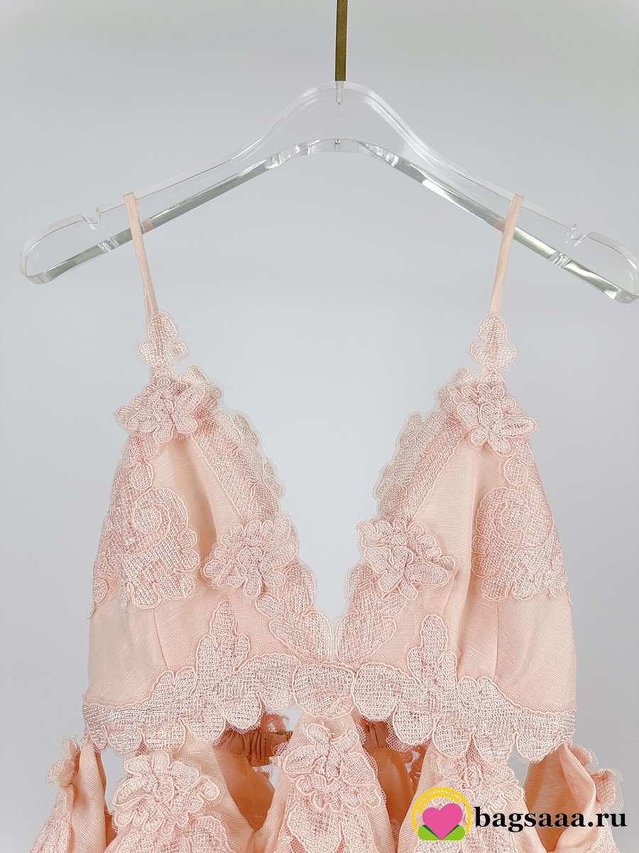Bagsaaa Zimmermann Crush Lace-Trim Tiered Linen-Silk Blend Maxi Dress in Pale Pink