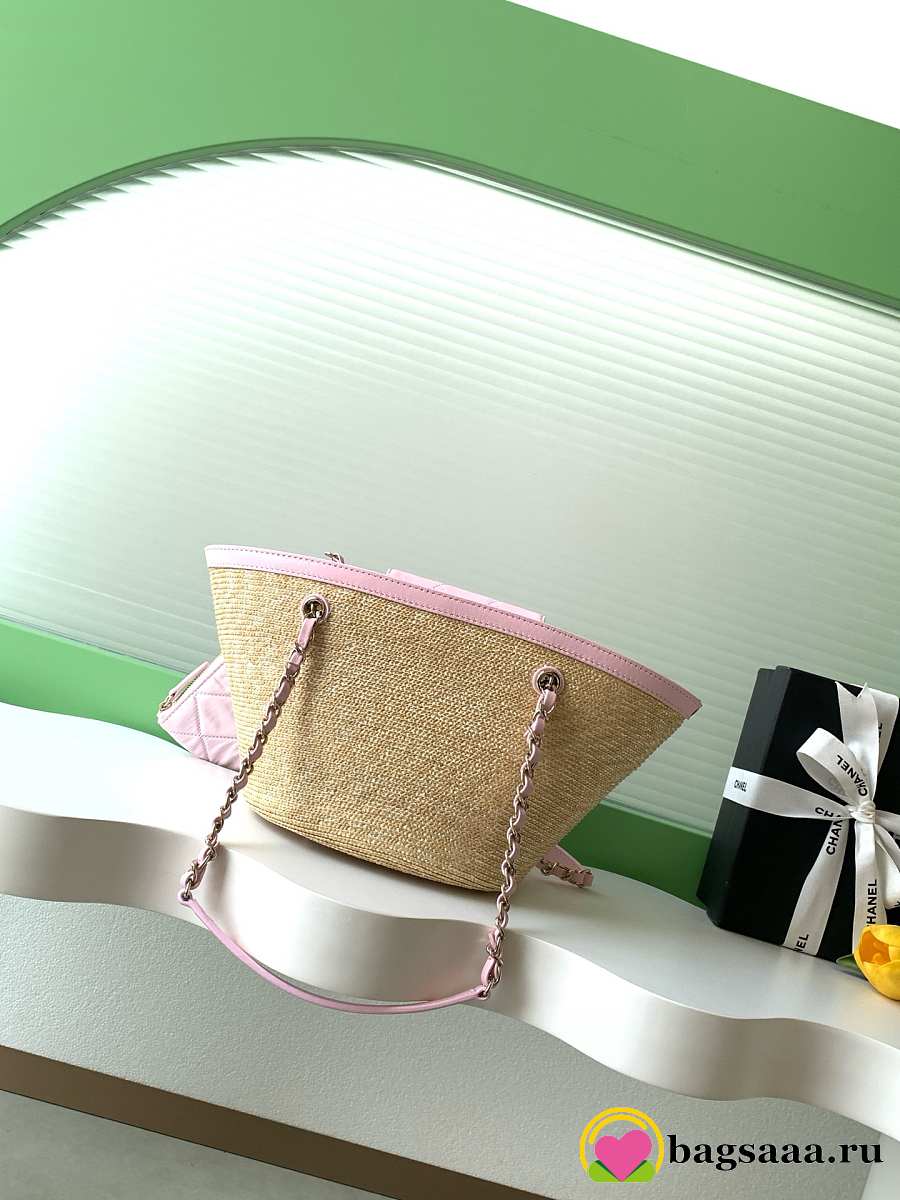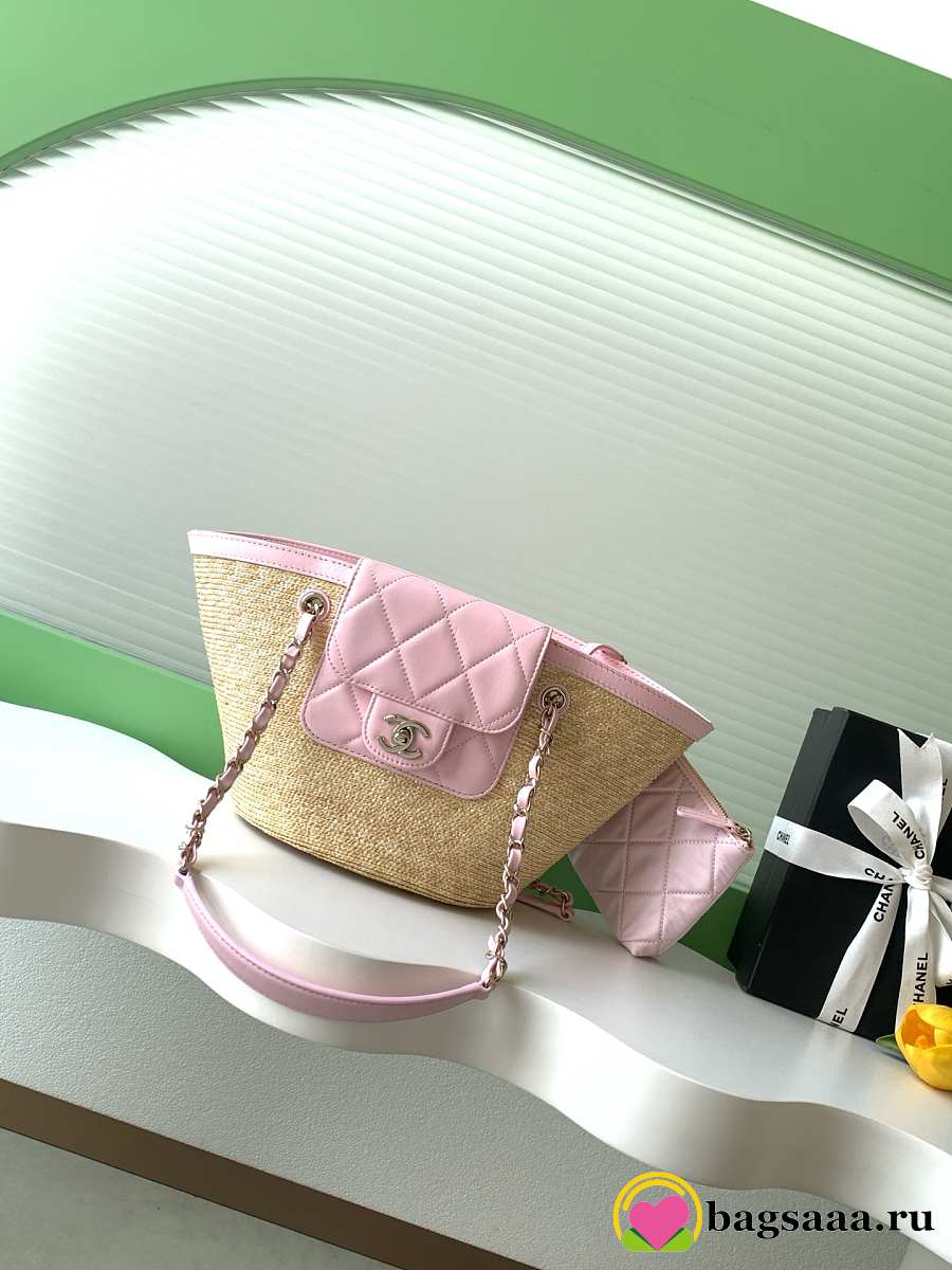 Bagsaaa Chanel Small Small Tote beige braided straw and light pink lambskin AS5951 - 41cm